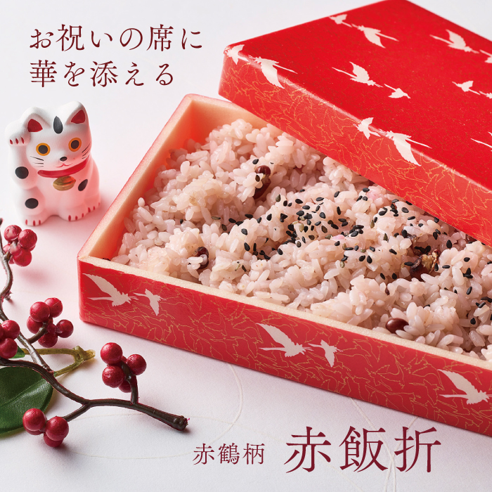 赤飯折 赤鶴柄 のせ蓋 長方形 1.5合~3合