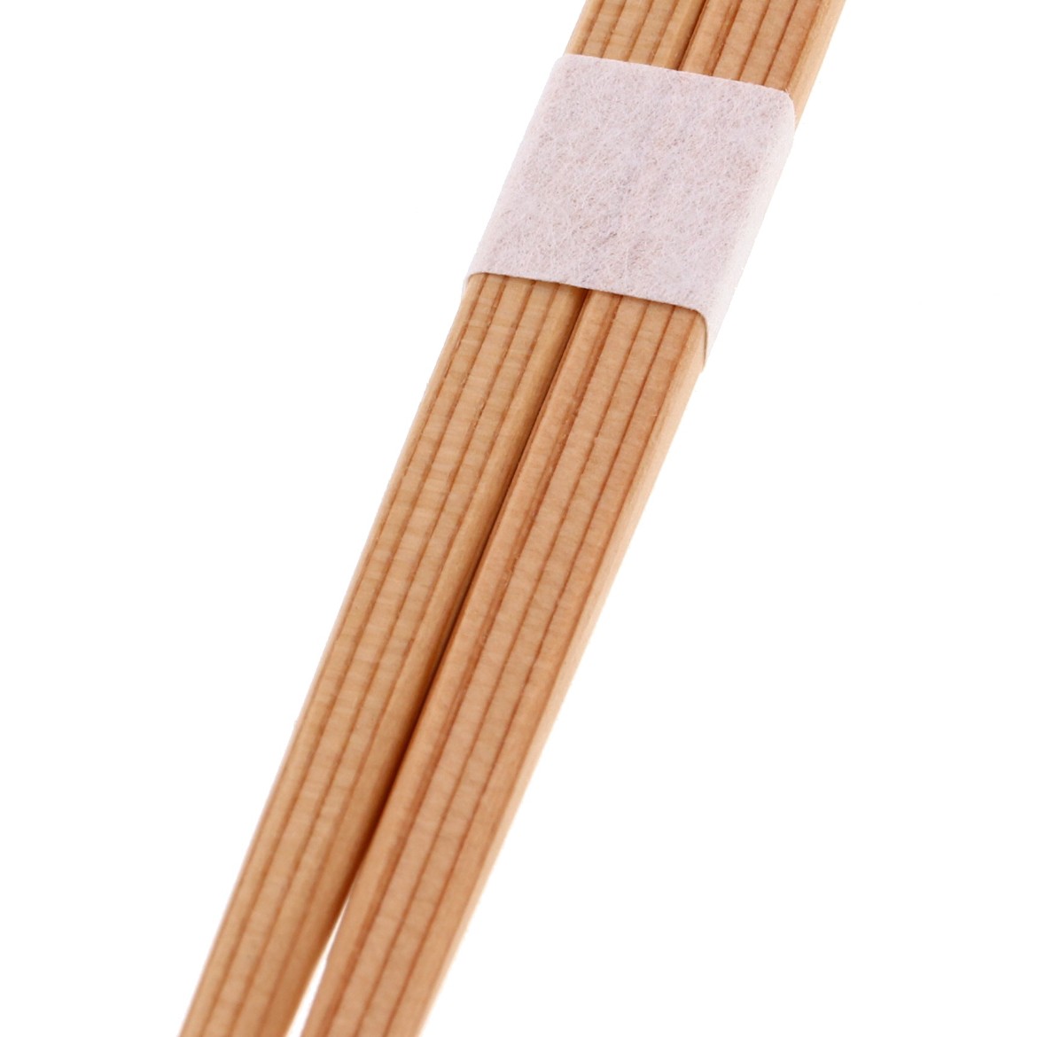 単価69.0円~奈良県吉野地方で生産された杉のお箸。木目が美しい角箸で、箸の頭部が四角錐に削られているのが特徴的で、箸先は丸く仕上げられています。また、箸帯も紙でありながら布のような質感がございます。 -