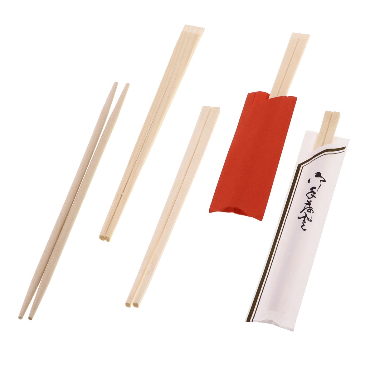 お弁当に必要なおしぼり入りの個包装の箸をはじめ、店舗でお使いいただける弊社オリジナルの高級割箸を取り揃えています。比較的安価な松や竹から国産の赤杉の箸まで。お問い合わせいただければ、帯にロゴを入れたり焼印を入れたりなど、幅広く対応しております。