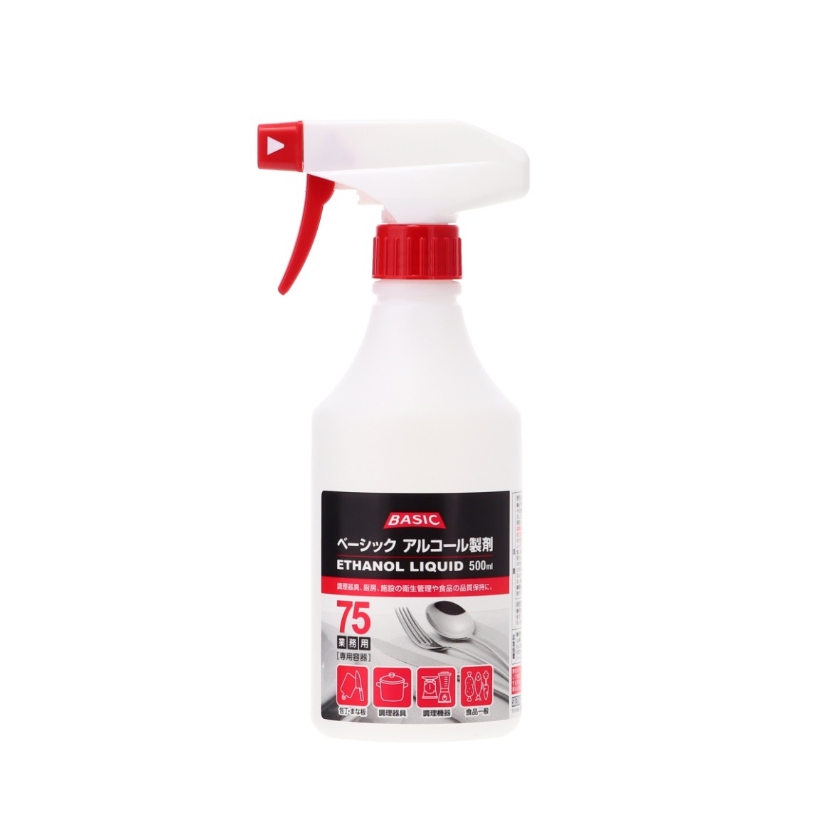 単価373.0円~BASICアルコール用(500ml)の空のスプレーボトルです。 食品添加物の為、水洗いや拭取りの必要がなく食品への直接の噴霧や浸漬・練り込みが可能です。 食器、調理器具、機械類、冷蔵庫、ショー... -