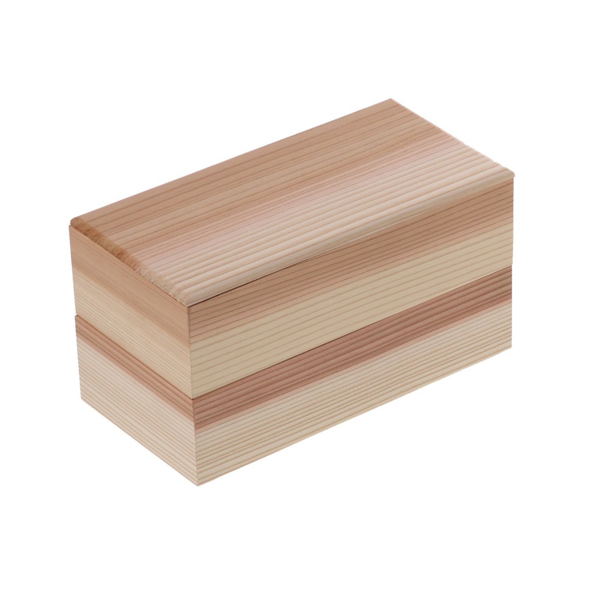 蓋のエッジが丸く削られているのが特徴的な杉の折箱です。1~2人用のおせち料理用にもオススメです。盛り込みの際に便利な可動式の仕切が横に1枚入っています。 仕切りをご使用されなければ、小鉢80が1段に...