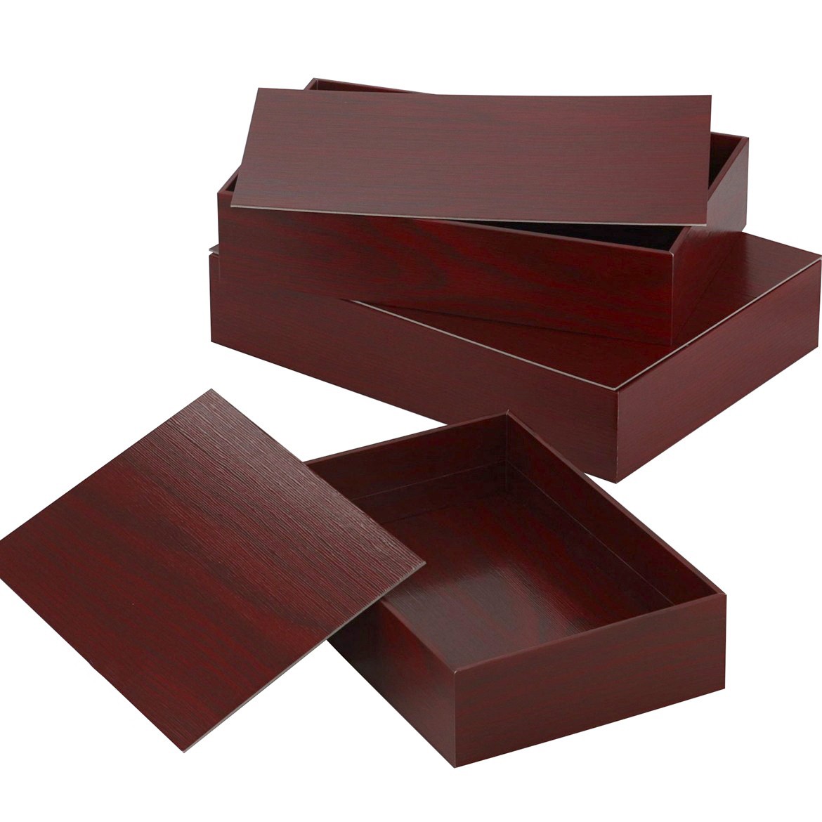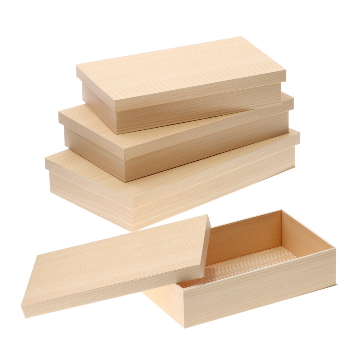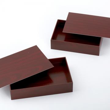 単価155.0円~側面は厚さ2mmのしっかりした素材の紙の折箱です。安心・安全なバージンパルプを使用しております。本物の木の折のような美しい木目柄も高級感があります。 -