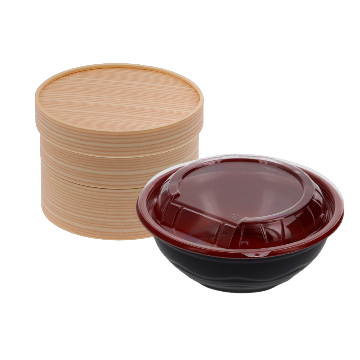 わっぱ飯や、わっぱ弁当、お持ち帰り用のご飯を入れる容器や、麺や丼容器などのお料理のデリバリーやテイクアウト容器として。また和洋菓子のギフトパッケージなど使い勝手や種類は様々。国産ひのきや国産赤松を使用したわっぱを中心に、中皿対応の丼容器や汁漏れ対応のスープカップも取り揃えています。素材別にメニューや用途にあわせてお選びください。