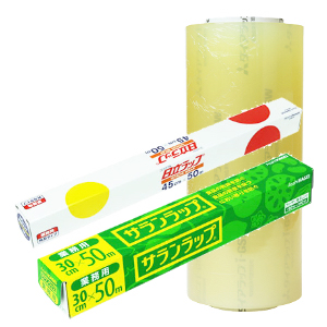 単価386.0円~サイズ:45cm×50m 対応温度:130℃~ー60℃ 粘着性・カット性・伸縮性に優れているので、容器をピッタリ包め、食材の鮮度を保てます。 -
