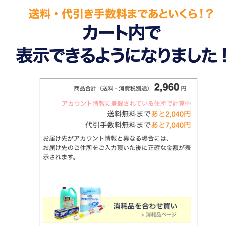 送料・代引き手数料 無料まであと〇〇〇円の表示が出るようになりました。