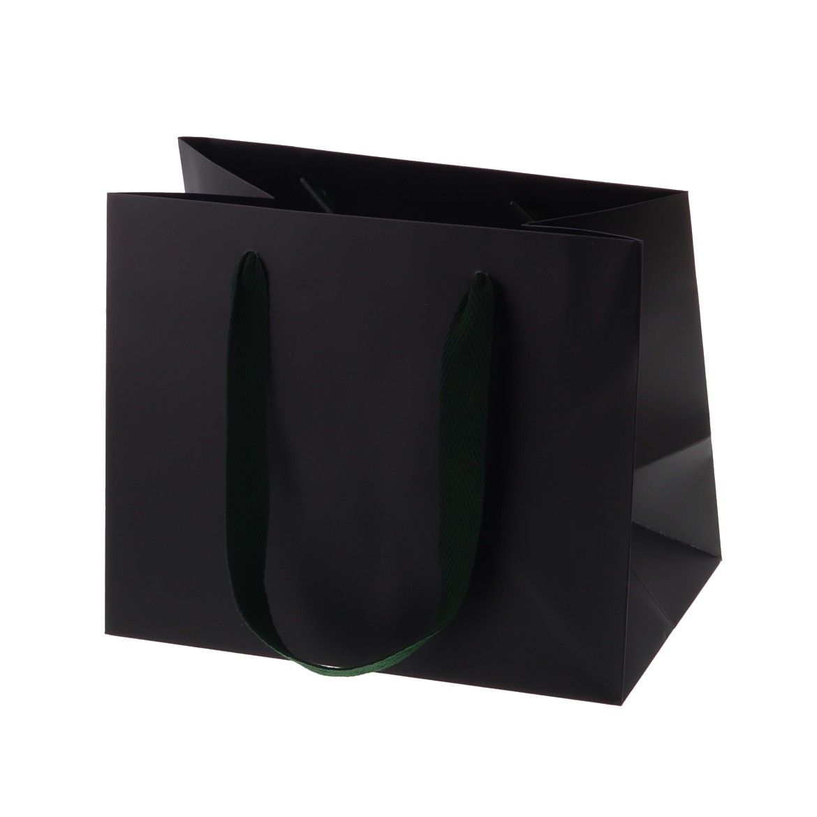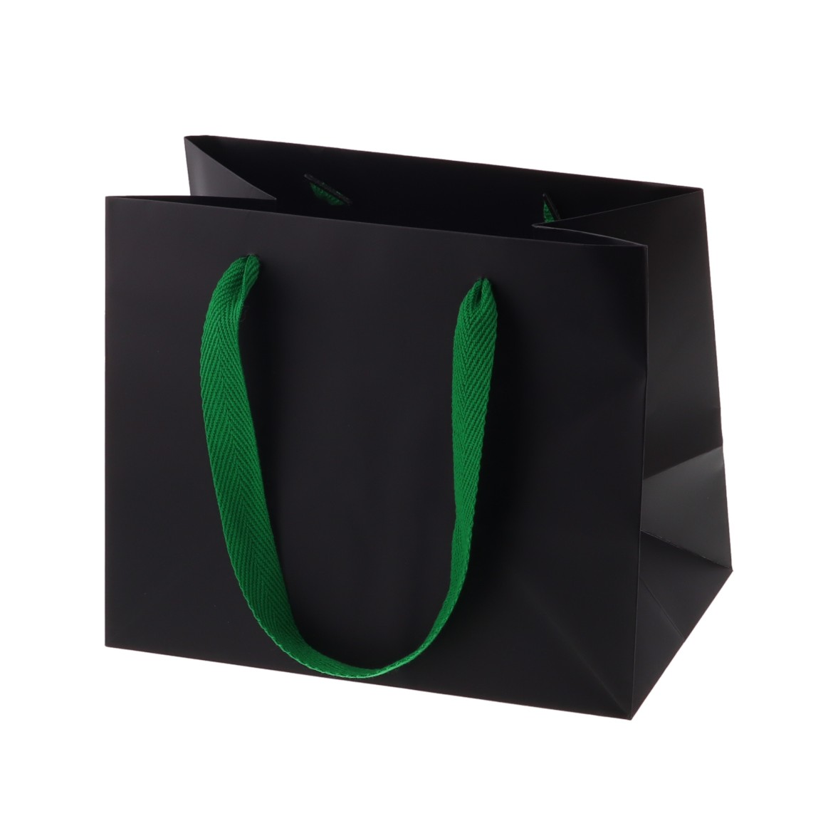 [ひも取付式]黒マット紙手提げ 紐:グリーン