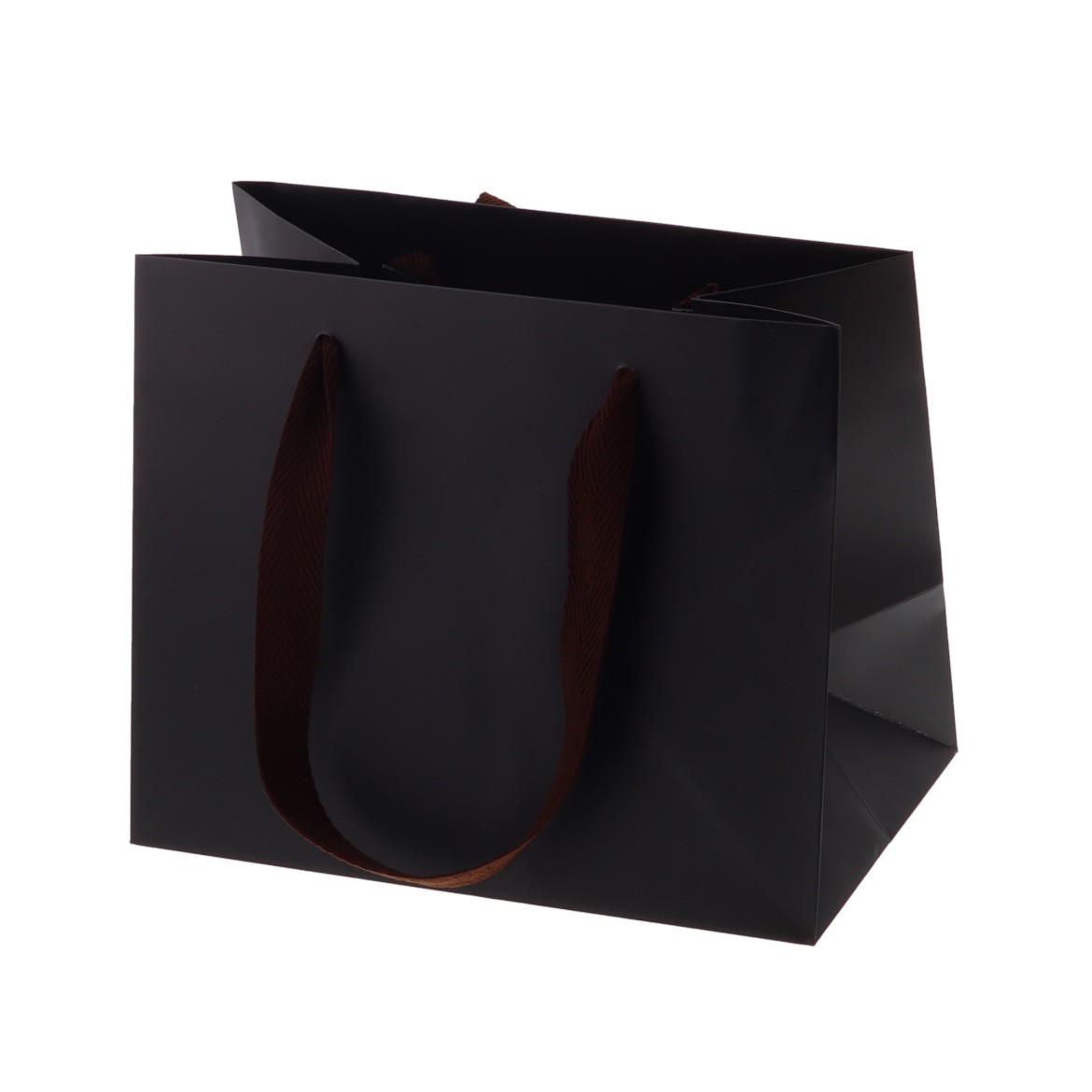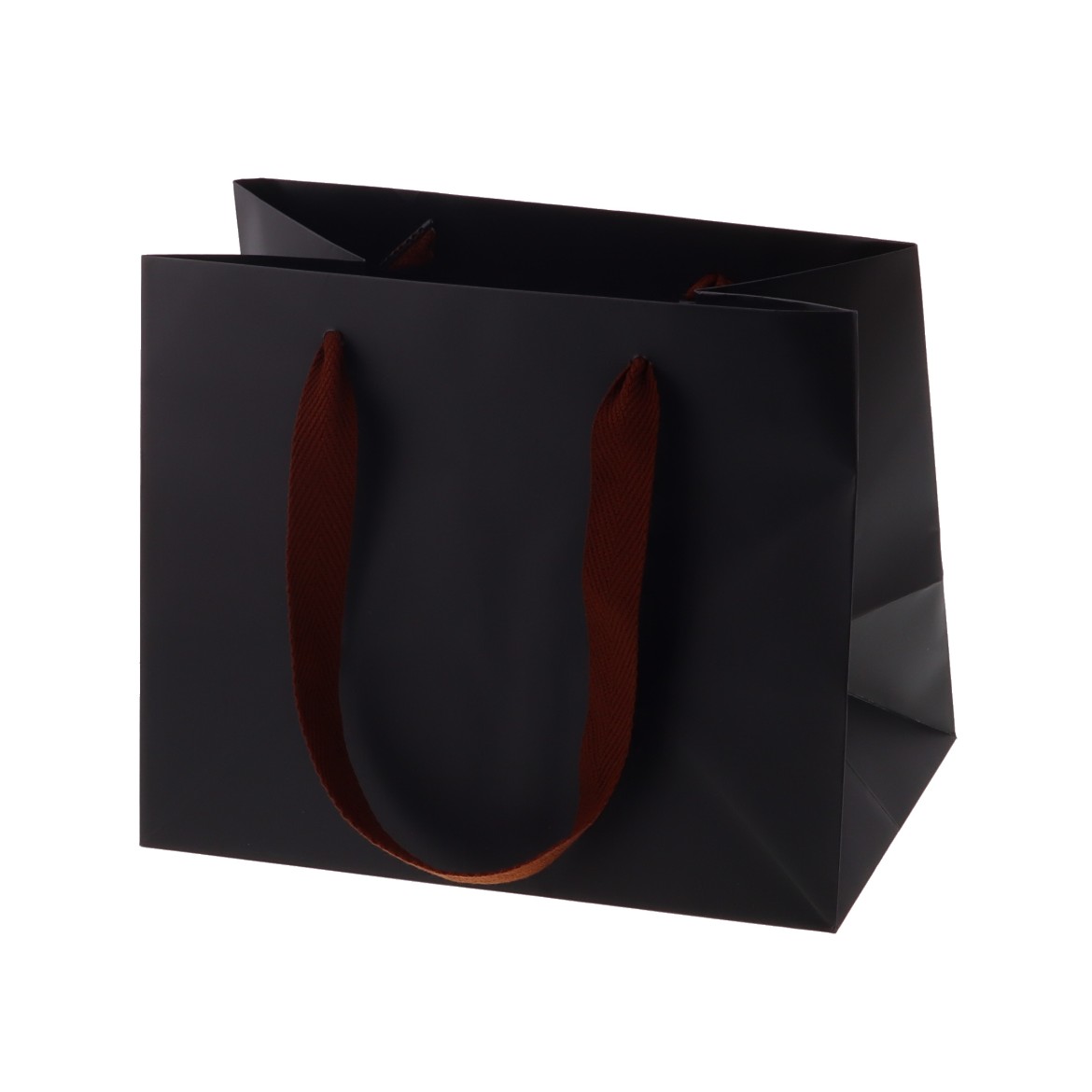[ひも取付式]黒マット紙手提げ 紐:ディープブラウン