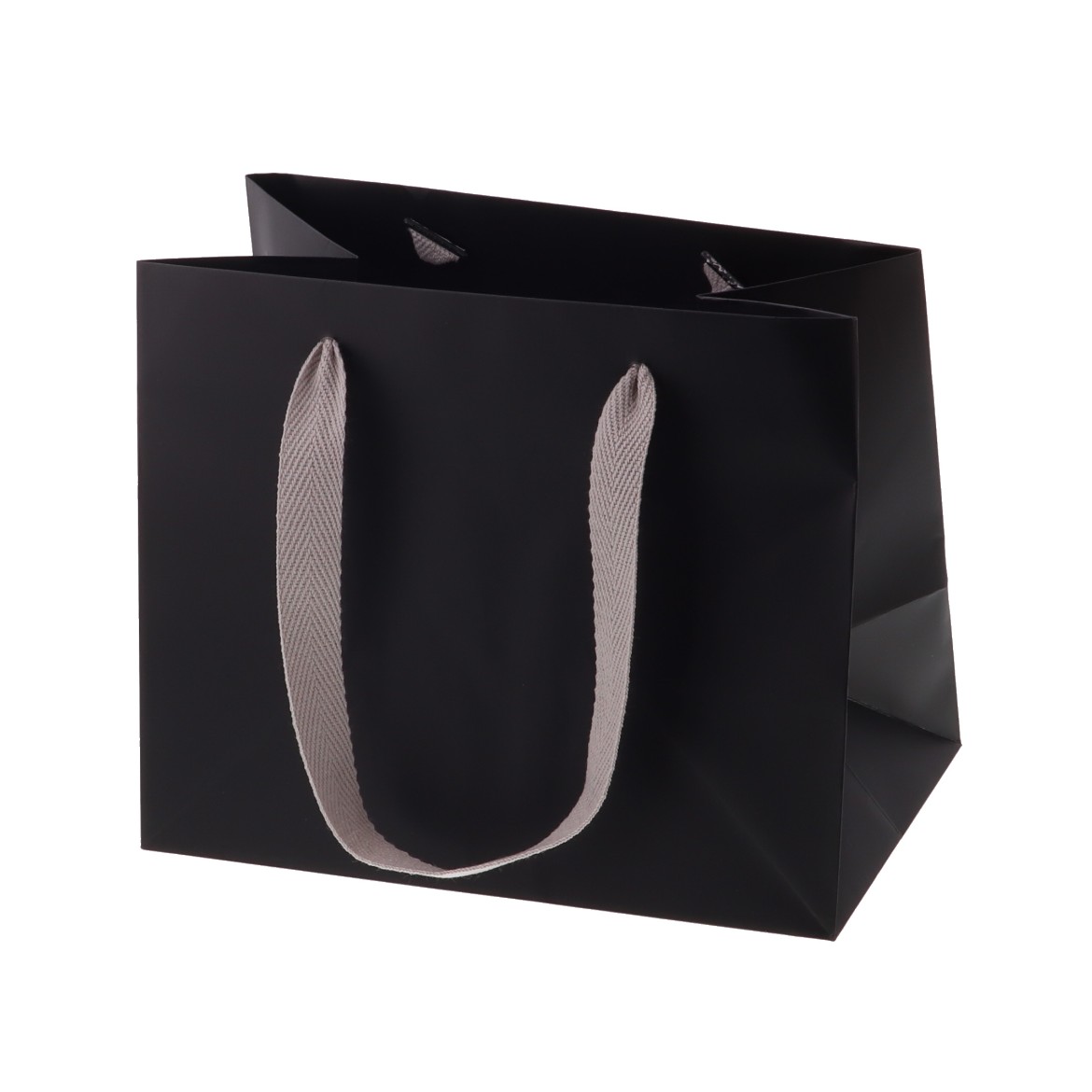 [ひも取付式]黒マット紙手提げ 紐:ライトグレー