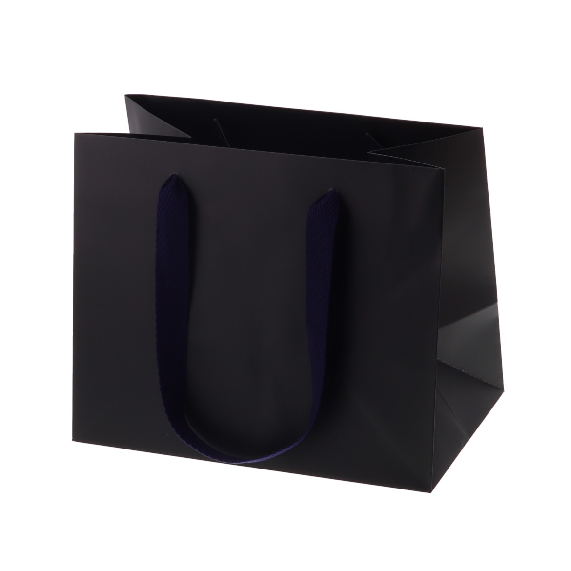 [ひも取付式]黒マット紙手提げ 紐:ロイヤルネイビー