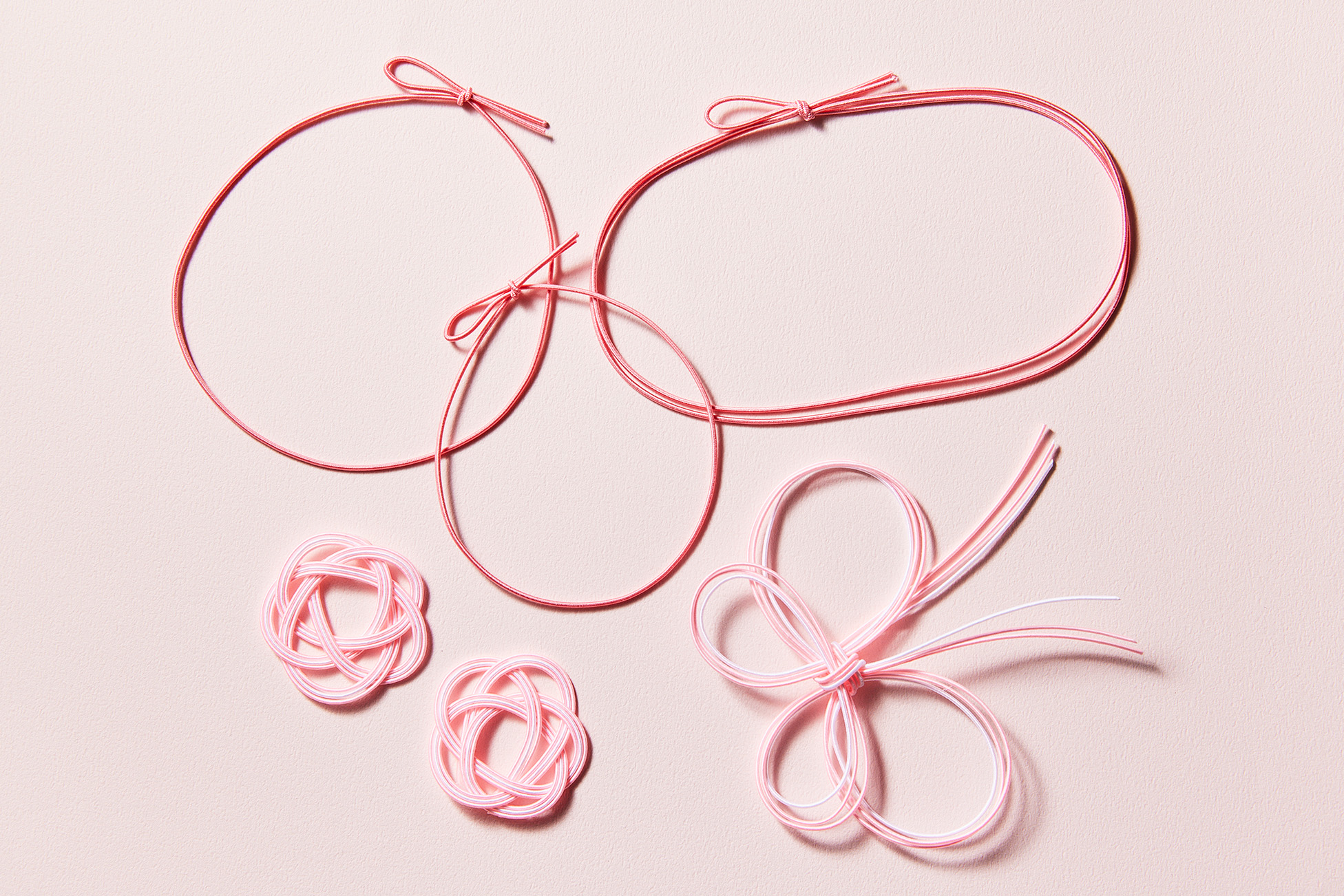 単価24.0円~華奢なデザインでありながら、削ぎ落したシンプルさが使いやすい『彩宝ゴム』。 名の通りどこかキラッと光るような鮮やかさが、程よく主張し、折になじみます。 二重結びで、より華やかな印象に。 -