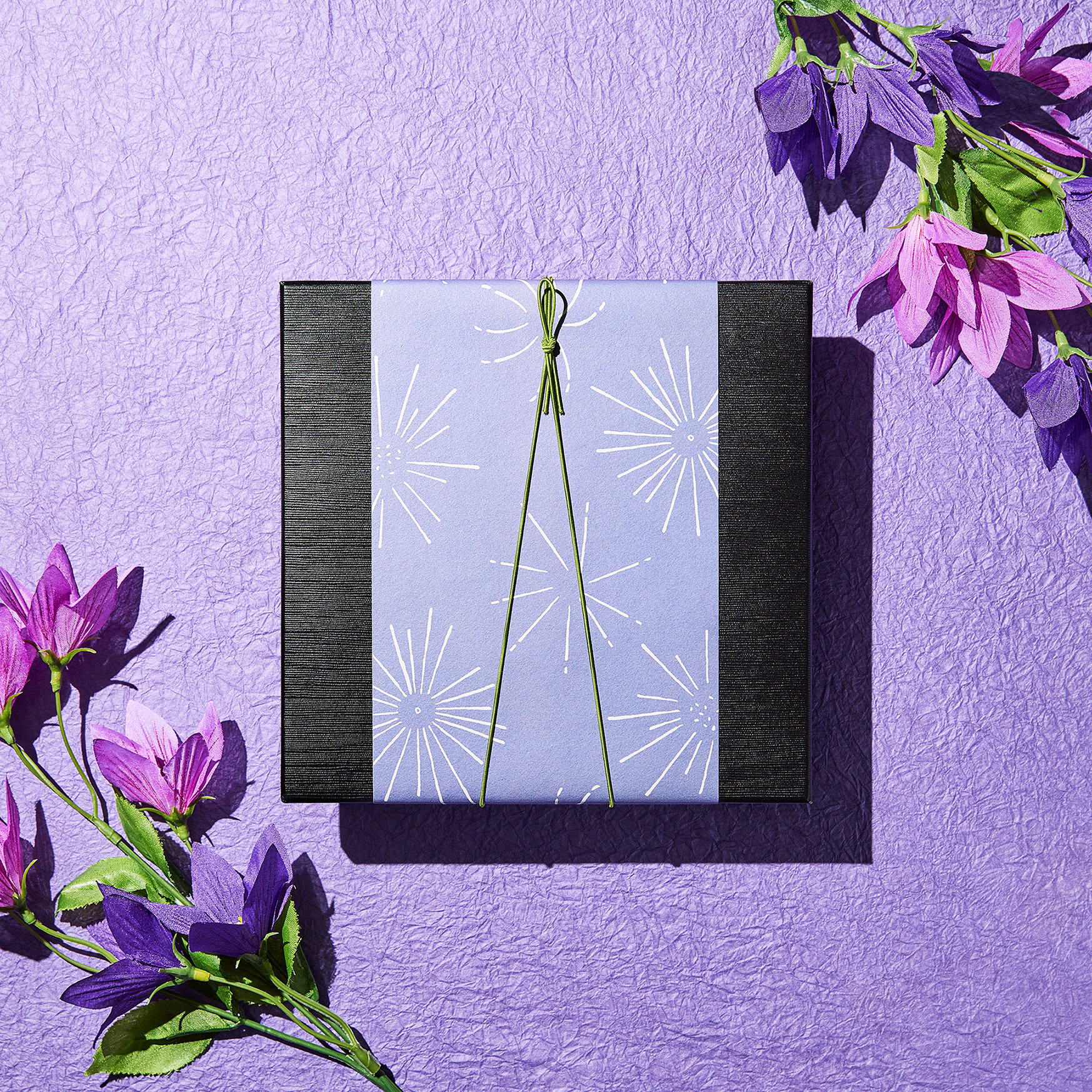 単価19.0円~青みのある鮮やかな紫が、折を上品に彩る。 散らばる花火が可愛らしい掛紙です。 夏の風物詩の一つ、「花火」。 夜空に打ちあがっているようなカラーや、花や草木をイメージさせる華やかなカラー展開で... -