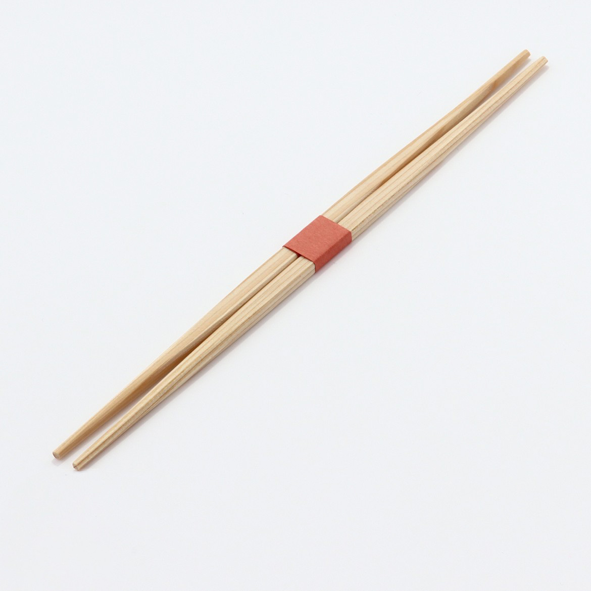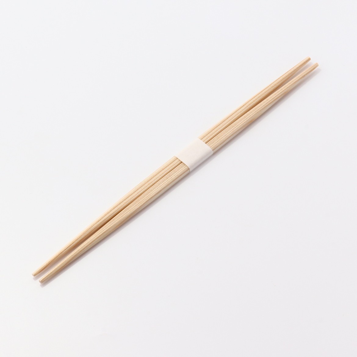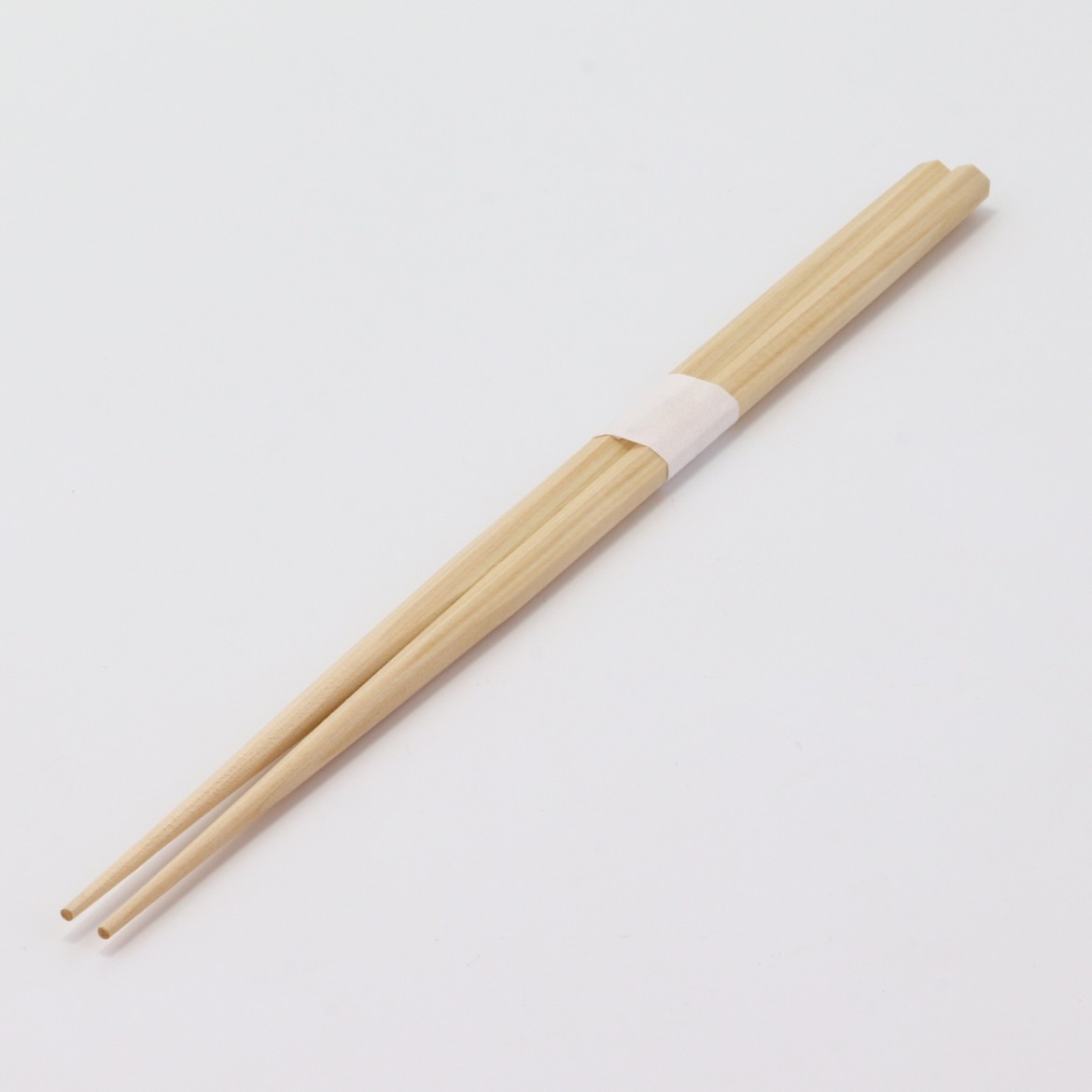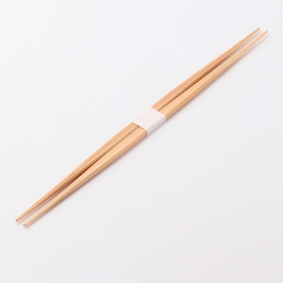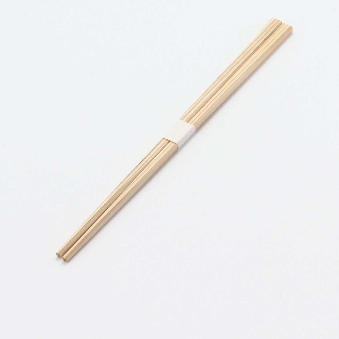 単価69.0円~奈良県吉野地方で生産された杉のお箸。木目が美しい角箸で、箸の頭部が四角錐に削られているのが特徴的で、箸先は丸く仕上げられています。また、箸帯も紙でありながら布のような質感がございます。 -