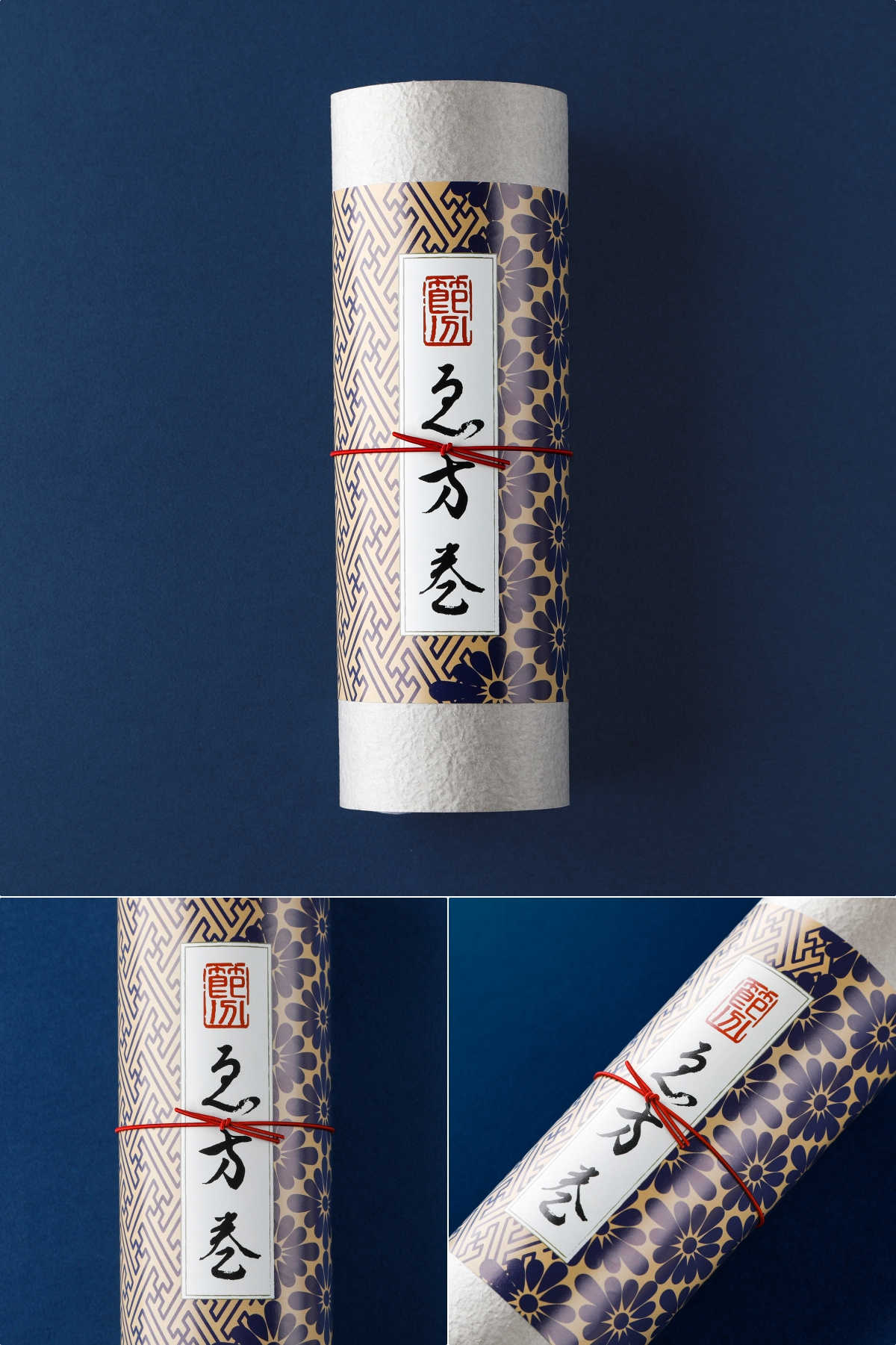 単価18.0円~日本の伝統的なテキスタイルデザインとして親しまれてきた紗綾形や花菱を使用した恵方巻にぴったりな掛け紙。 -