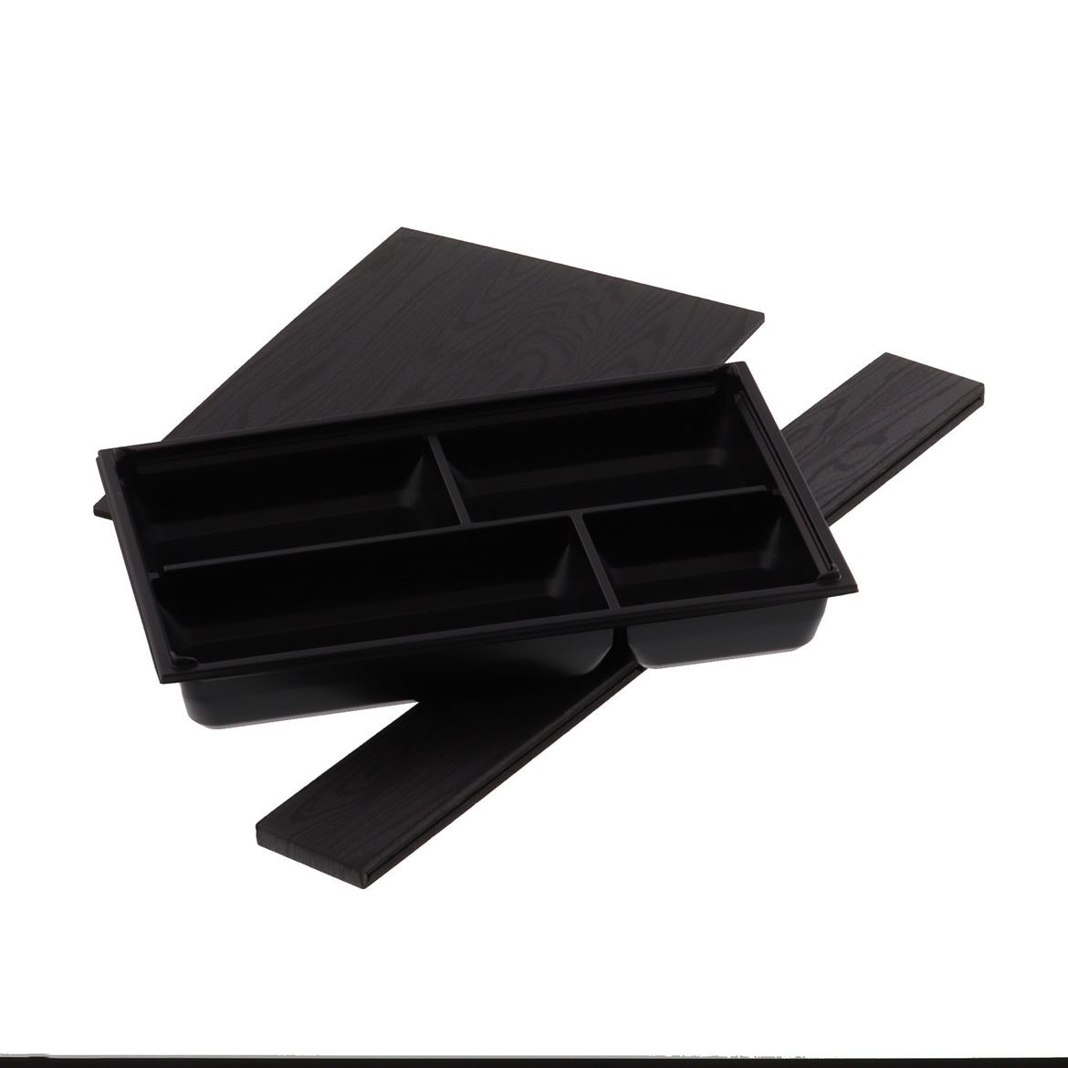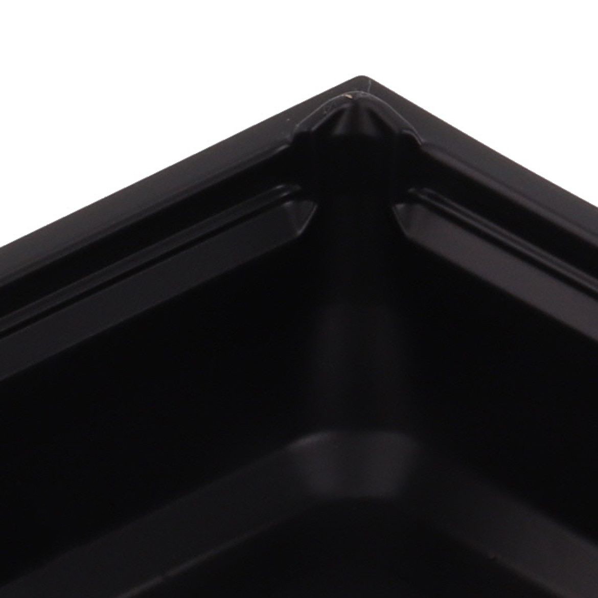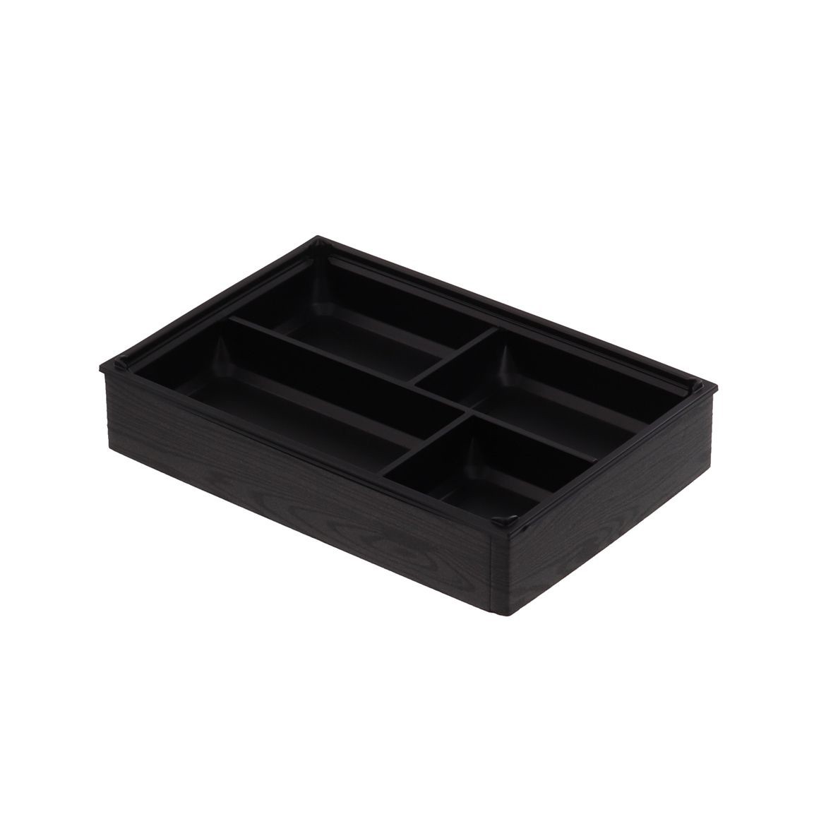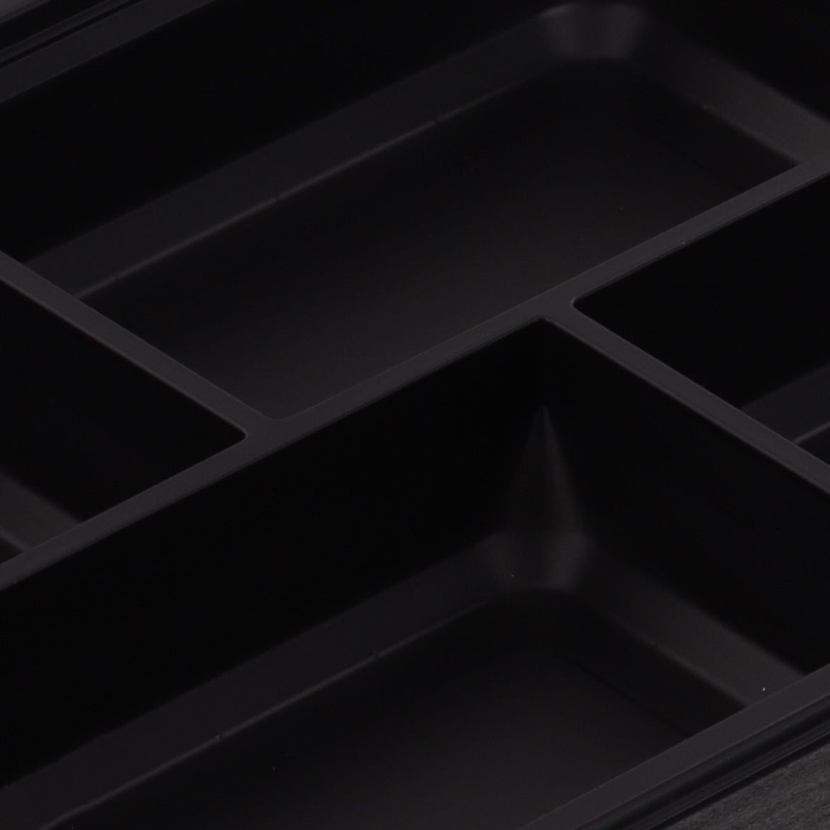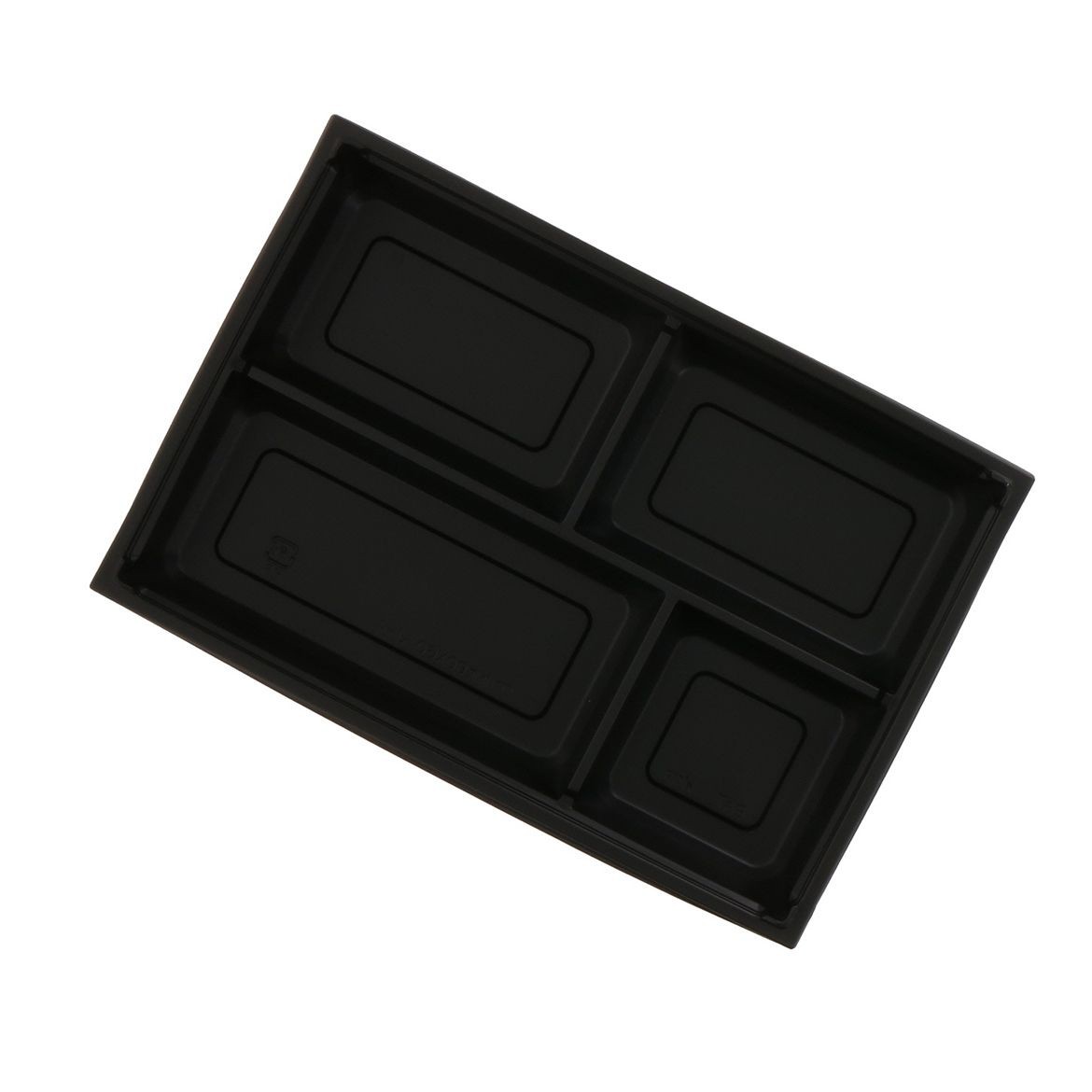 四分する仕切りが付いたトレーは内蔵されており、タレや汁が漏れにくい形状です。高級感のあるシックな外装で、オードブルやてまり寿司など一度に多くの種類を入れる際におすすめです。組み立て式のため在庫場所も抑えられます。