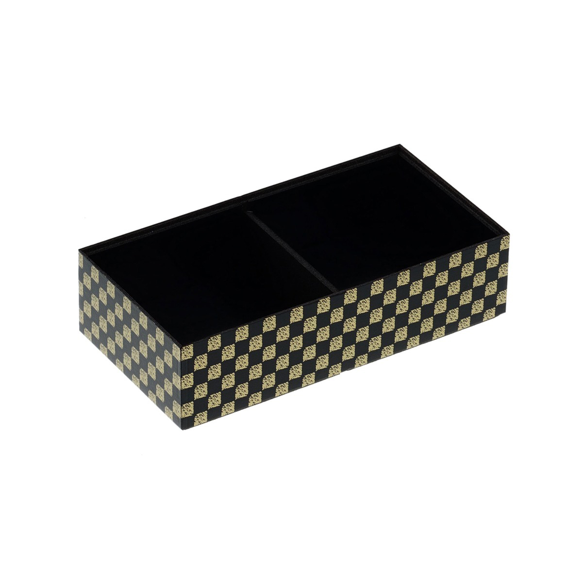 おめでたい席にもよく似合う、「金市松柄」のプラの折箱です。本体から蓋が飛び出ない仕様(印籠蓋)のため、見た目も非常にスマートです。本体を追加すれば、3段・4段にも重ねられる仕様になっており、仕切りも取り外し可能です。