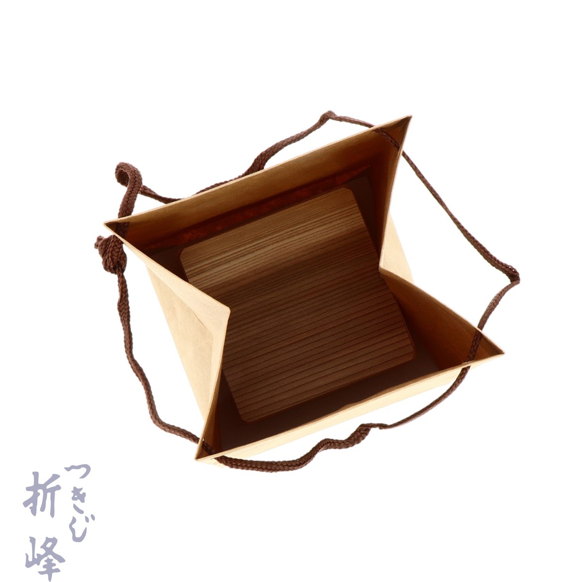 一般的な底面が長方形の紙手提では、正方形や丸のわっぱなどを入れる場合に、マチのサイズが合ってても、横がスカスカして商品が端っこに寄ってしまい、手提袋が傾いてしまうことがありませんか?
