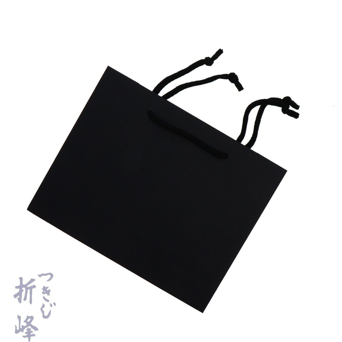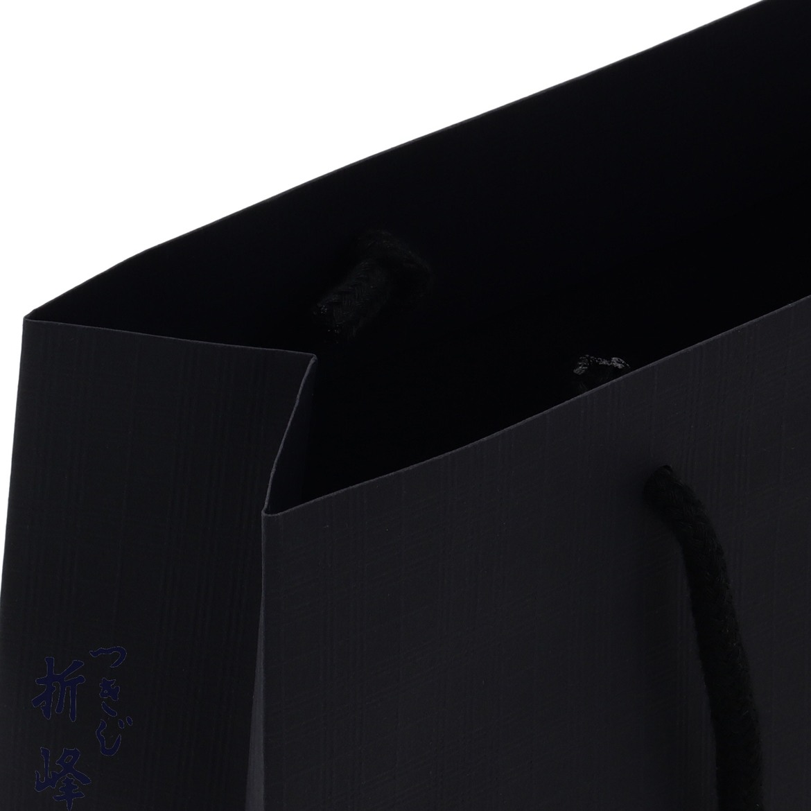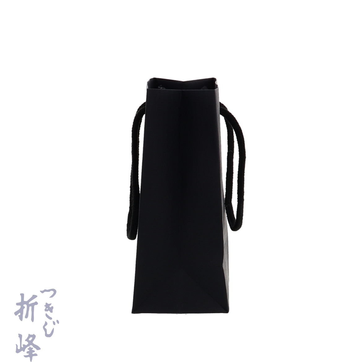 マットブラックの紙に格子柄の「エンボス加工」が施してありますので、落ち着いた感じの雰囲気があります。マチが狭く、横が長いので、太巻用の折箱など、細長いパッケージに便利な袋です。