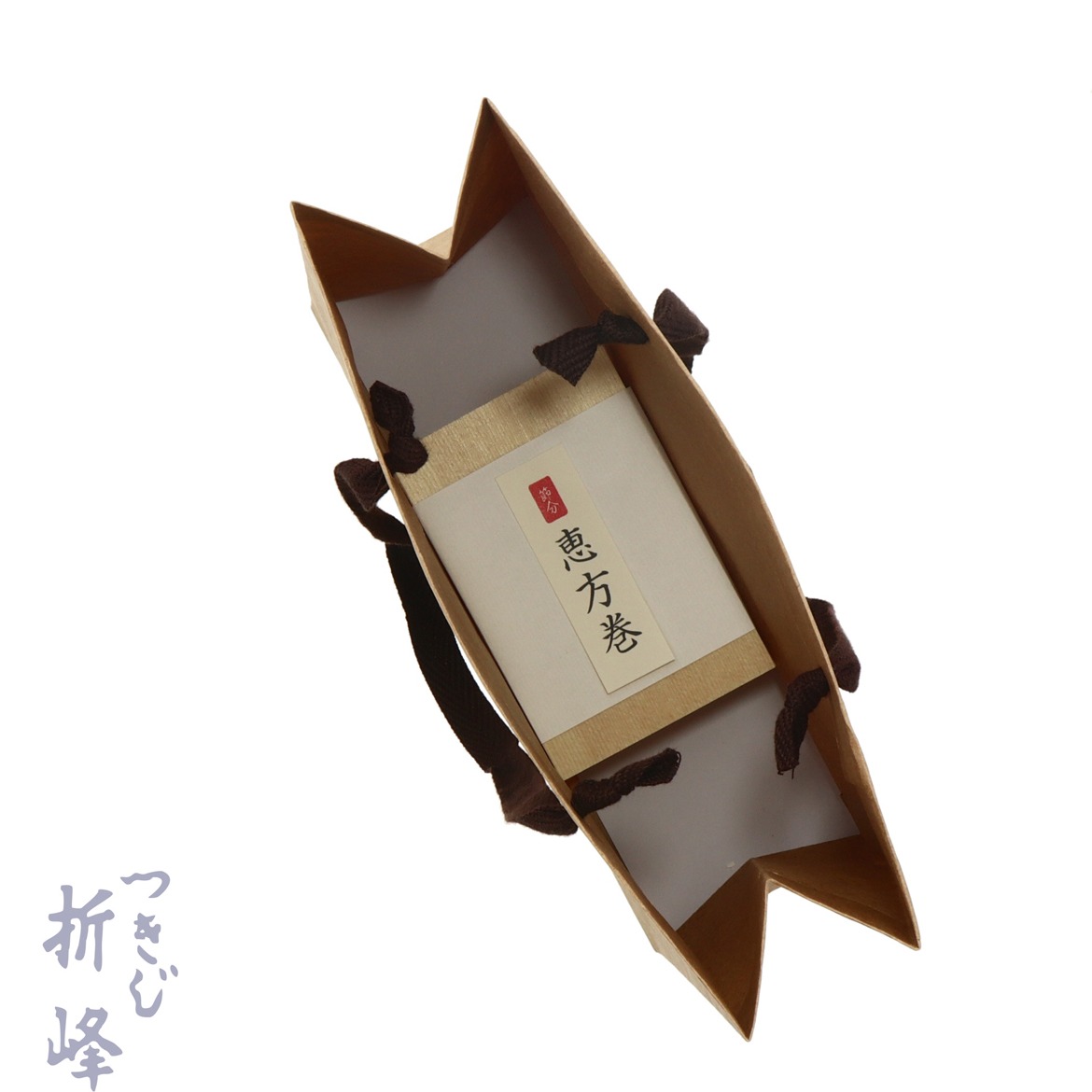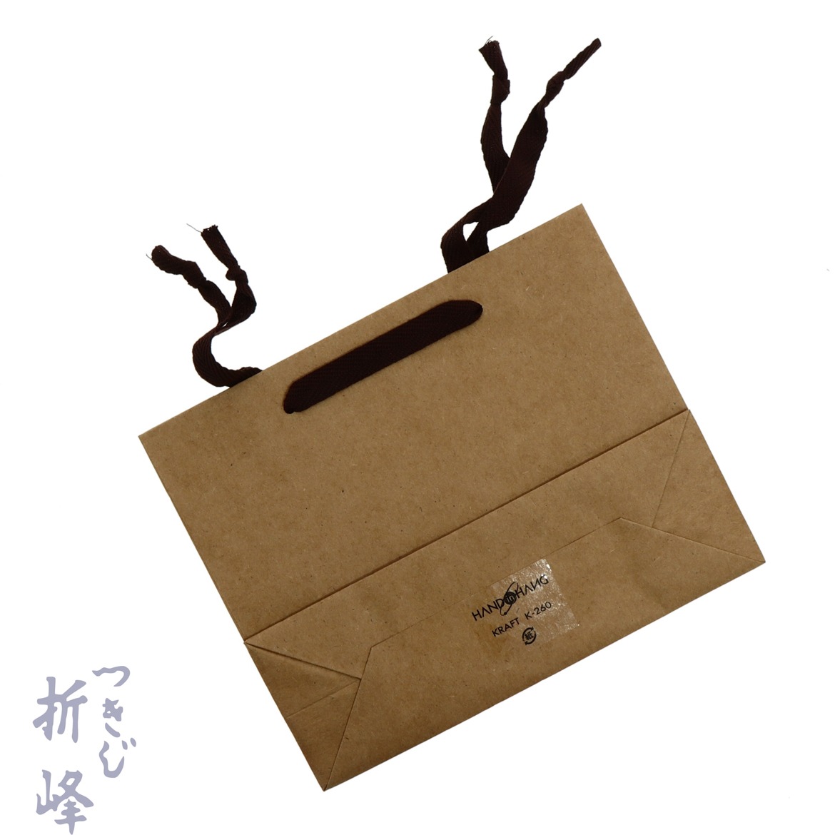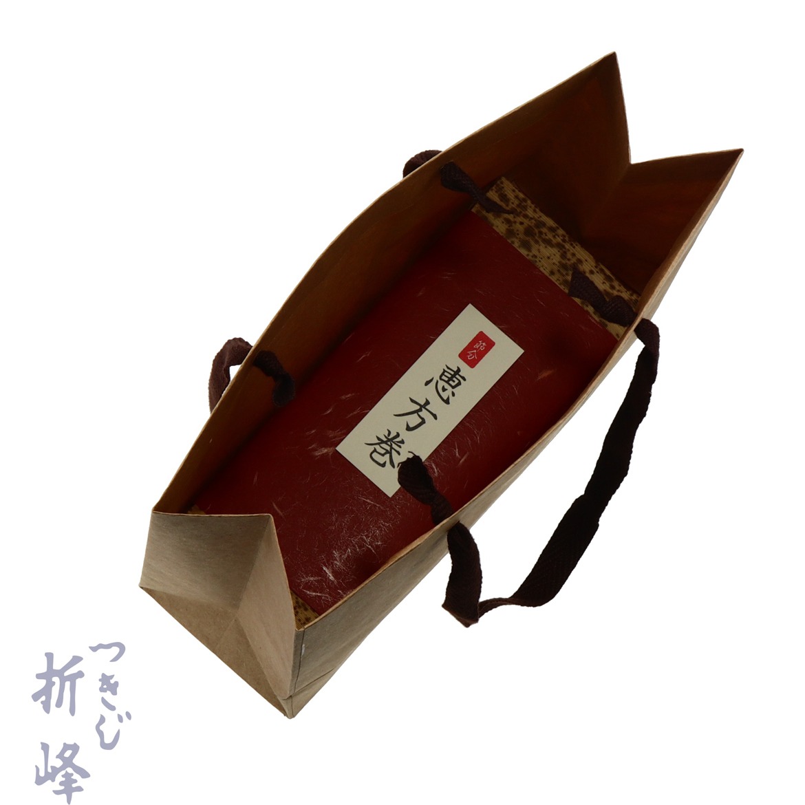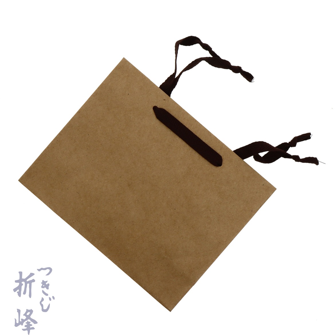 紙は未晒しのクラフトで、いろいろな場面でご利用頂ける雰囲気があります。マチが狭く、横が長いので、太巻用の折箱など、細長いパッケージに便利な袋です。