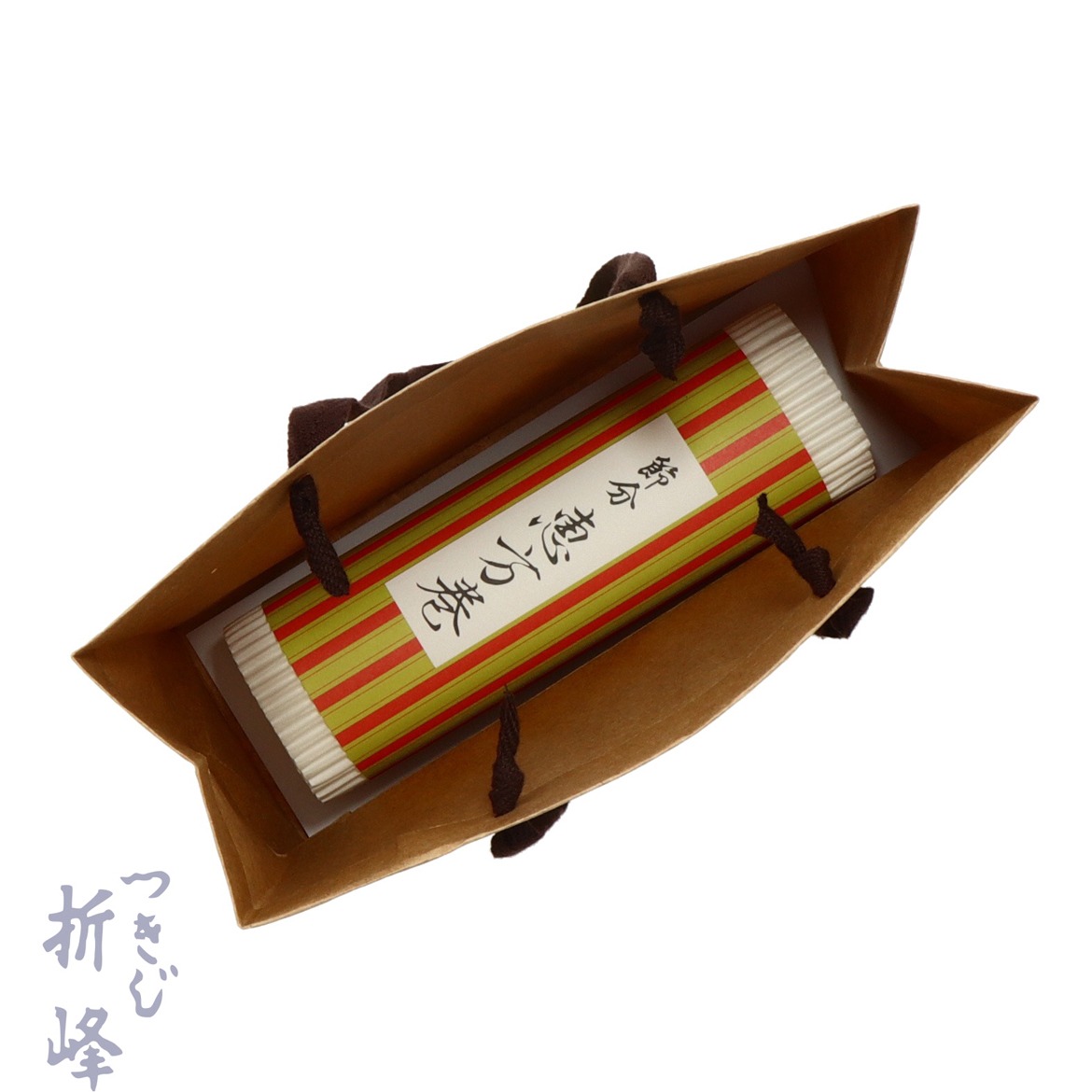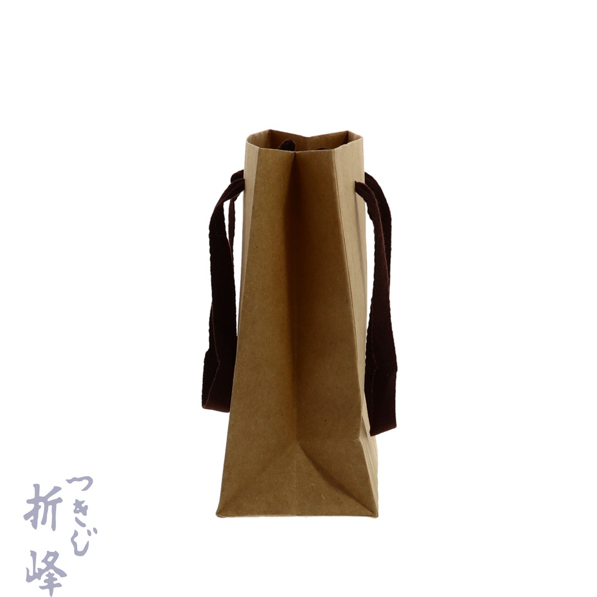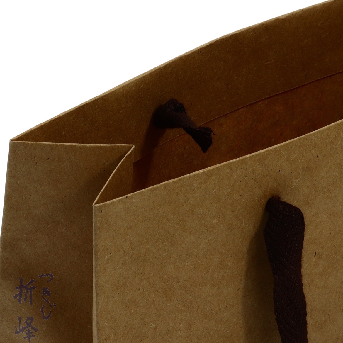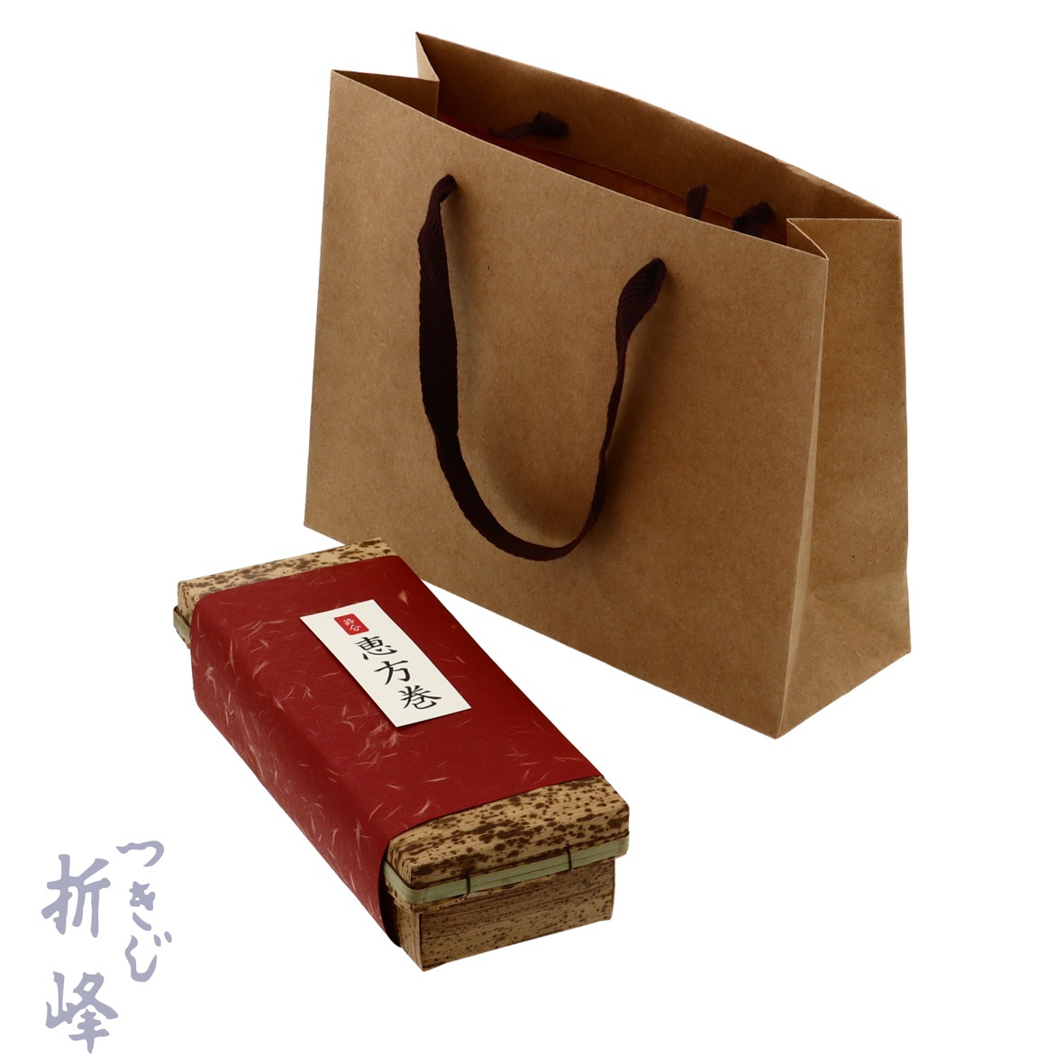 紙は未晒しのクラフトで、いろいろな場面でご利用頂ける雰囲気があります。マチが狭く、横が長いので、太巻用の折箱など、細長いパッケージに便利な袋です。