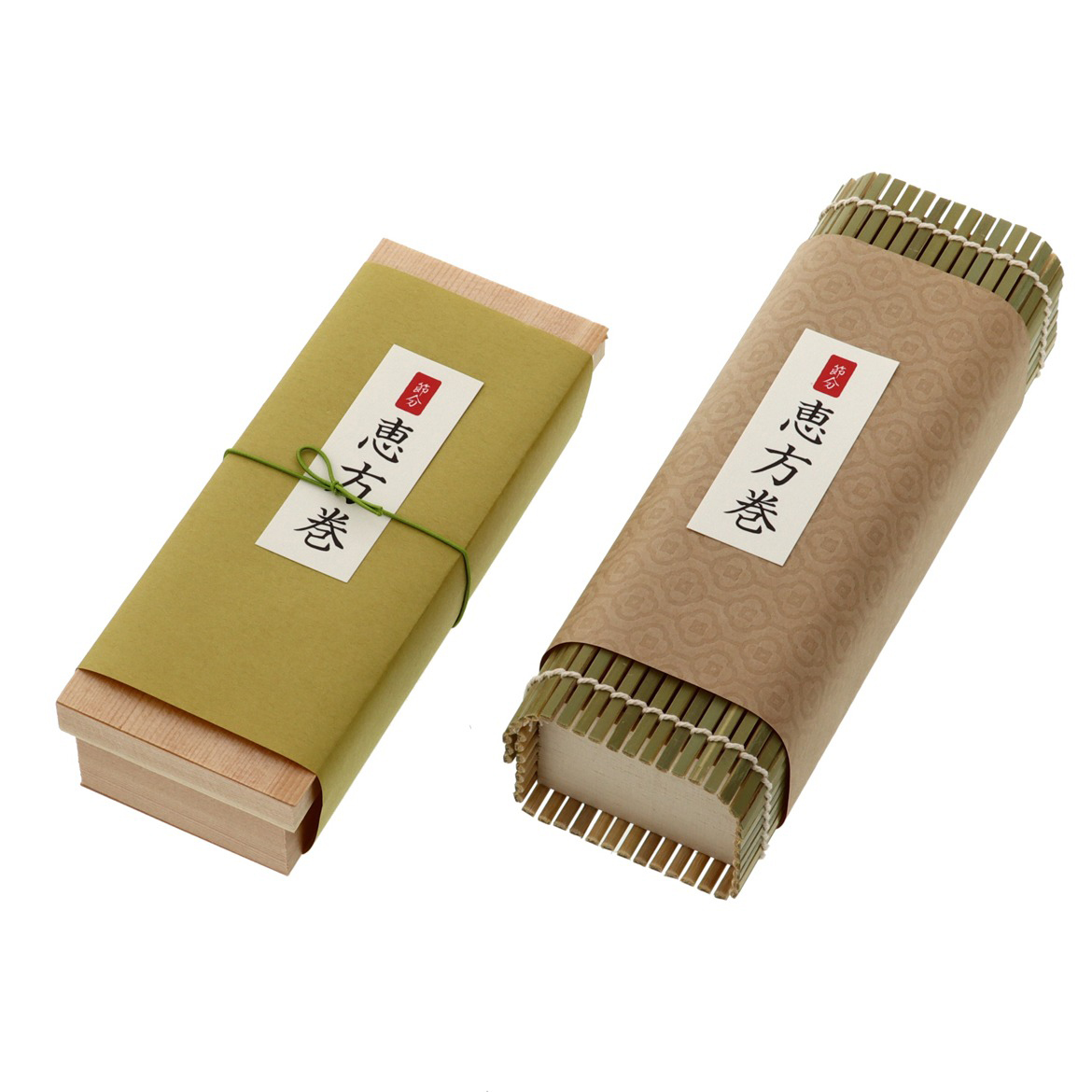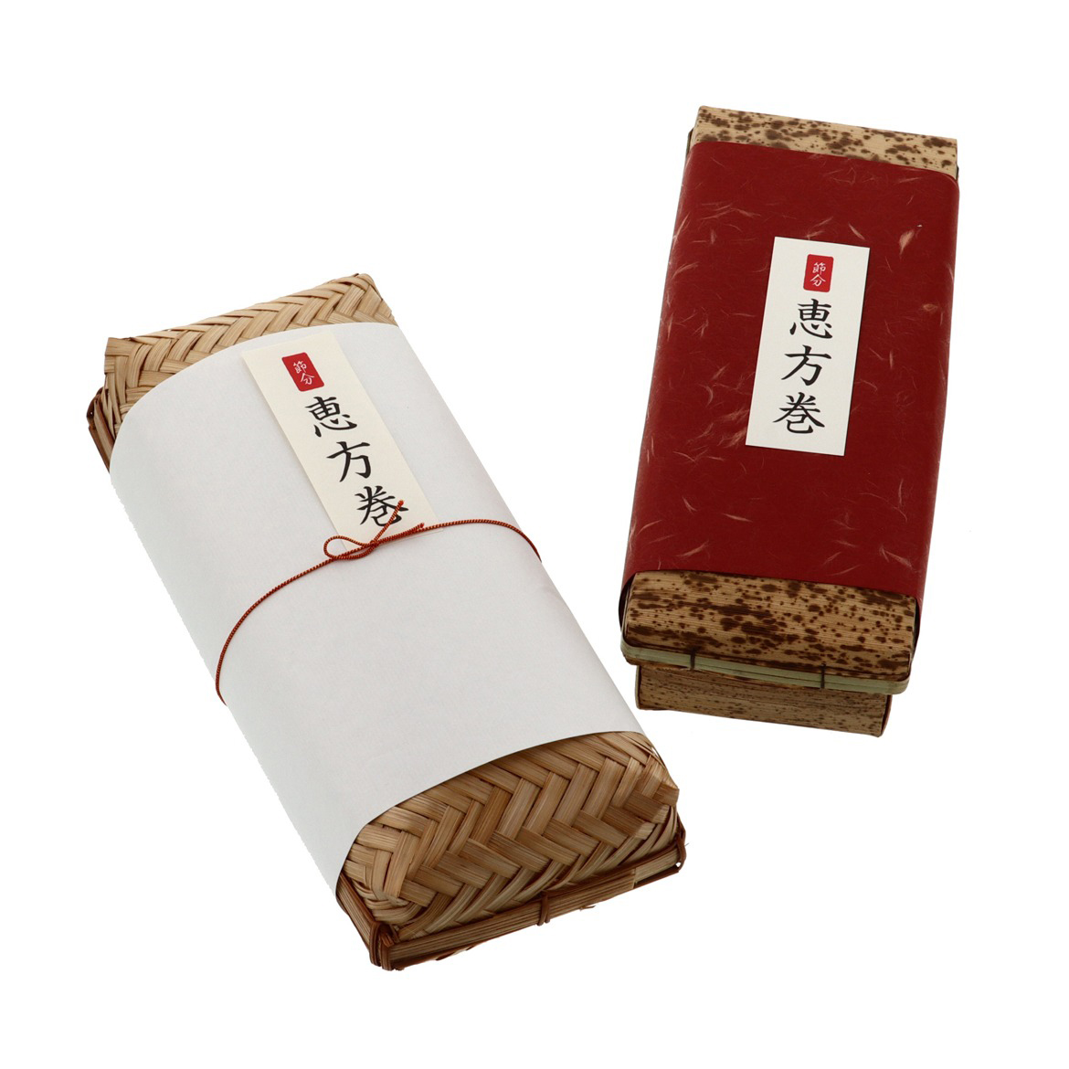 パッケージがスッキリとした印象に仕上がる、恵方巻用の「紙札」です。裏面には両面テープが貼ってありますので、簡単に貼る事ができます。掛紙に合わせたり、箱にそのまま貼ったり、いろいろなバリエーションでお楽しみ下さい!
