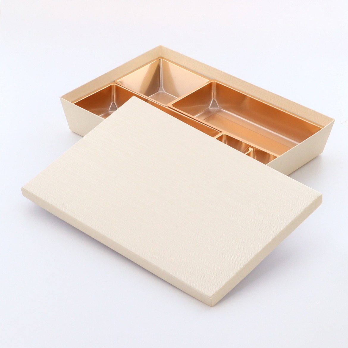 ・6枚目の画像のように、長方形の小鉢と正方形の小鉢を並べて2個使用した時に隙間なくピッタリ入る設計です。4マスを使用する場合は、7枚目の画像のように、奥から手前はピッタリですが、左右は少しだけ本体と小鉢の間に隙間が空きます。