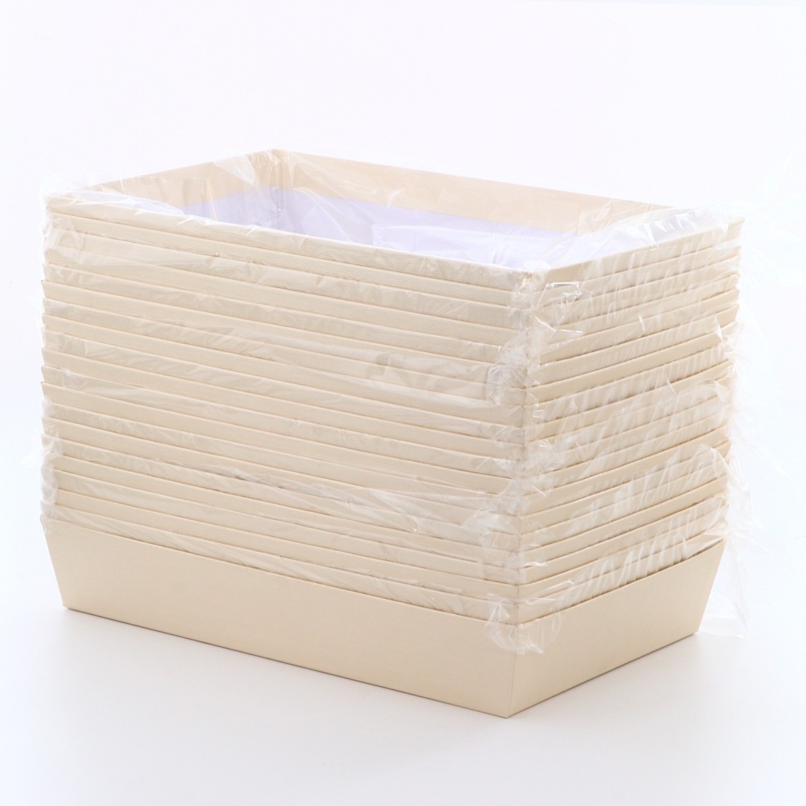表面に質感のあるエンボス加工を施した紙を採用した、高級感がありながら価格は抑えた紙製の折箱です。本体がテーパー型で、重ねられますので在庫スペースに優しい商品です。本体には当社で販売している小鉢65が6個ピッタリ収まるサイズになっており、色々な形状の小鉢をお使い頂けますので、あらゆるメニューにご利用いただけます!