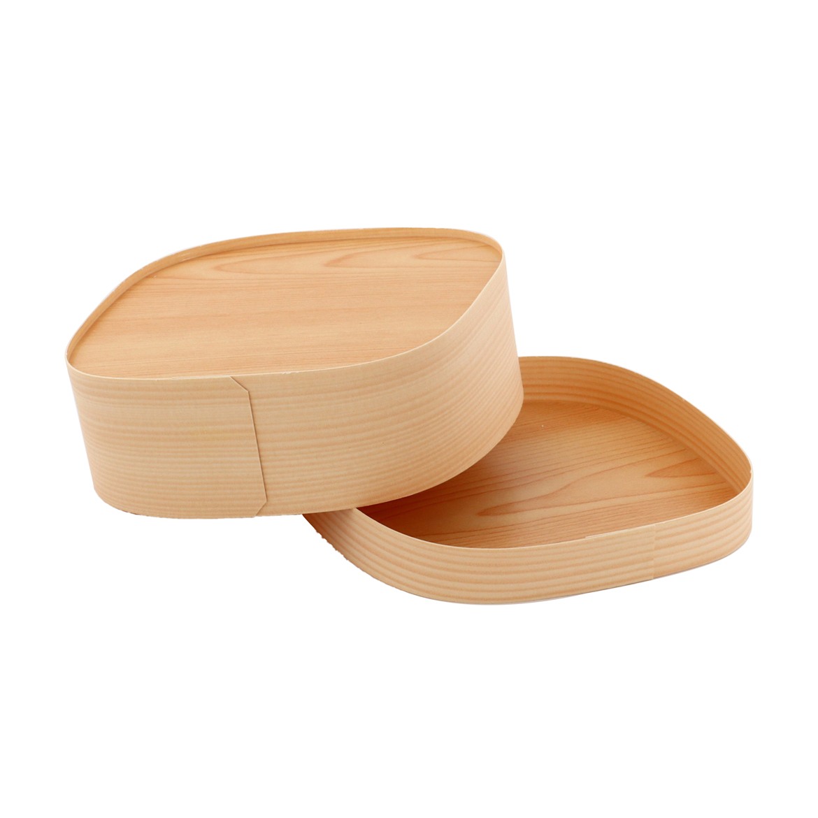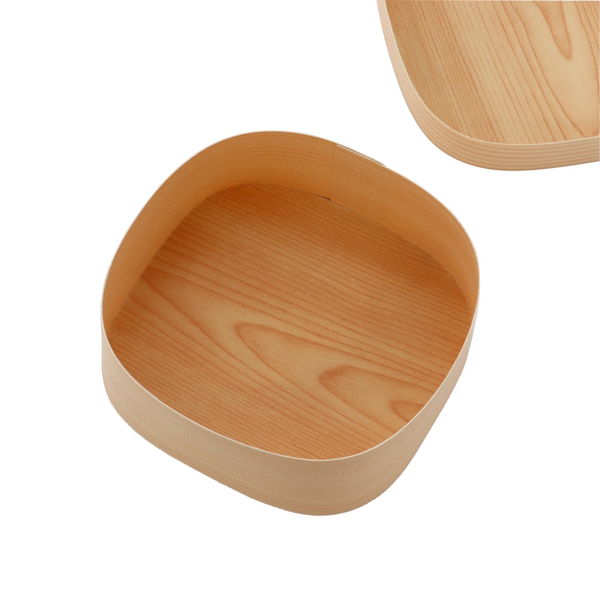 紙製の四角いわっぱです。紙製ですが、質感・色合いは木わっぱに近い仕上がりになりました。