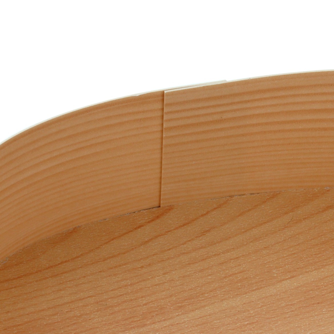 ・丸わっぱでお弁当をつくる場合は、ごはんの上におかずを乗っけるスタイルが多いかと思いますが、こちらの小判3号はご飯の横におかずを盛り込めるように、すこし大き目に作られております。