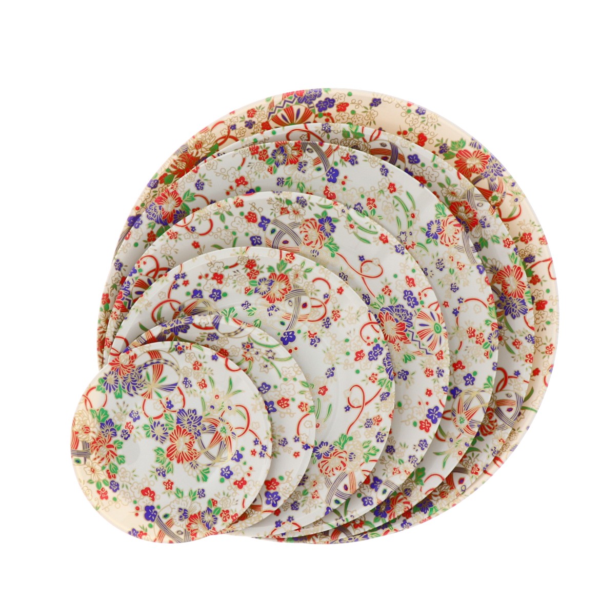 プラスチック製で、少し硬めで安心感のあるお皿です。豊富な柄とサイズがありますので、季節やお料理の内容によって様々な用途でご対応できるシリーズです。