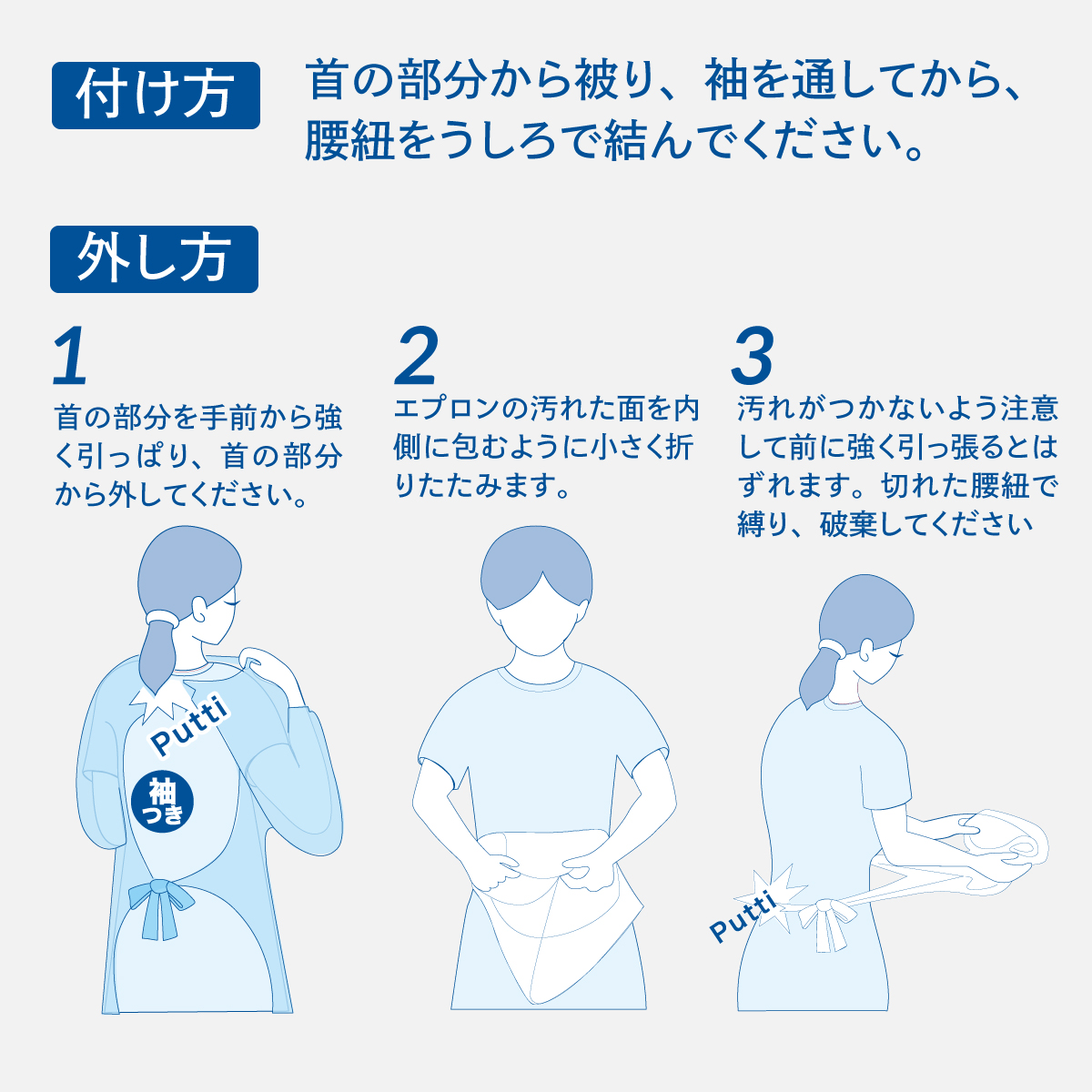 ・ポリエプロンは洗剤・油に強く、食品加工や洗浄作業にも最適です。