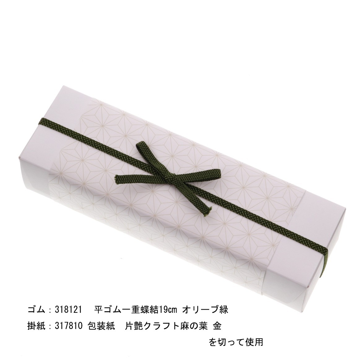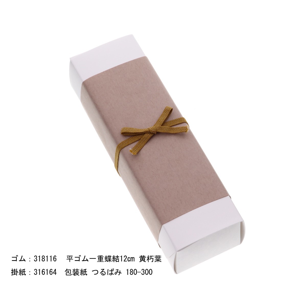 白無地の箱ですので、いろいろな柄の掛け紙やゴム・紐などを合わせやすいです。