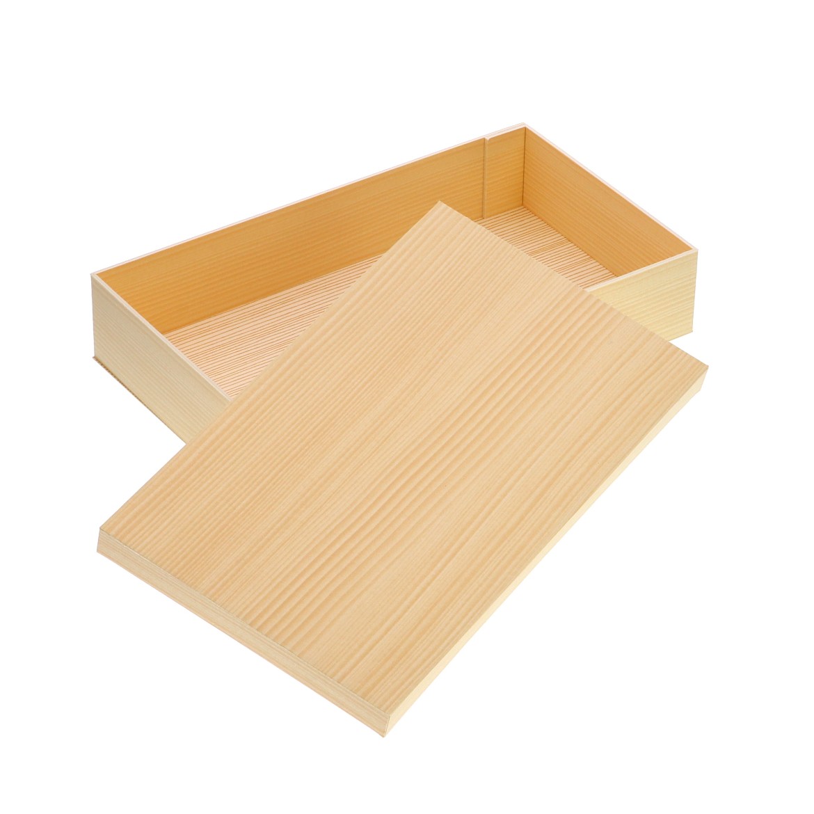 側面は厚さ2mmのしっかりした素材の紙の折箱です。安心・安全なバージンパルプを使用しております。本物の木の折のような美しい木目柄も高級感があります。