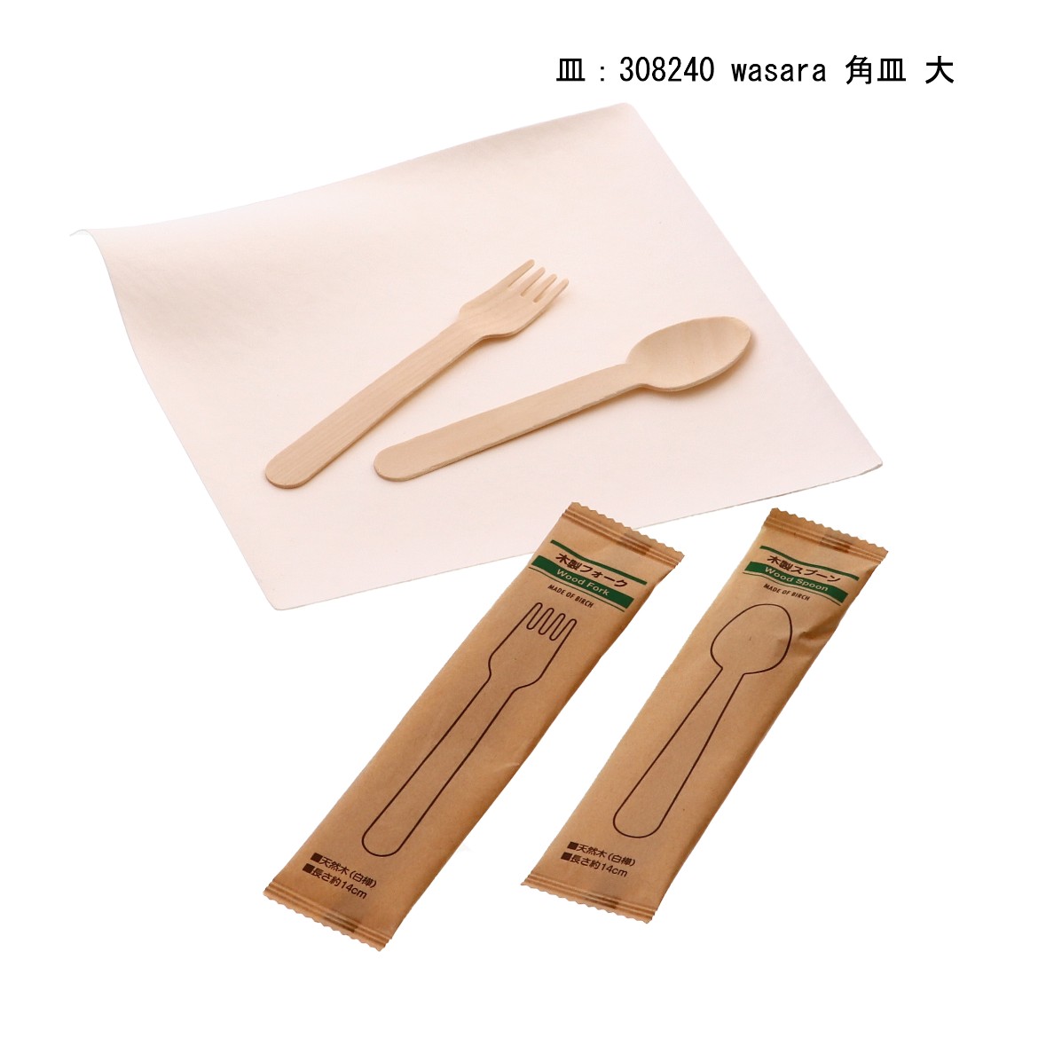 白樺の白く美しい木目は、木の温もりを感じさせ、お食事シーンを優しく彩ります。個包装になっているので衛生面も安心してご使用いただけます。こちらは、SDGsに基づいてメーカー様が「脱プラスチック」を目標に作られた製品です。