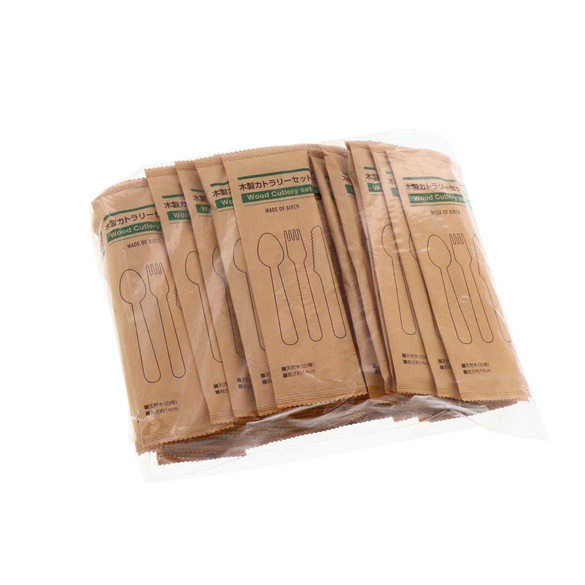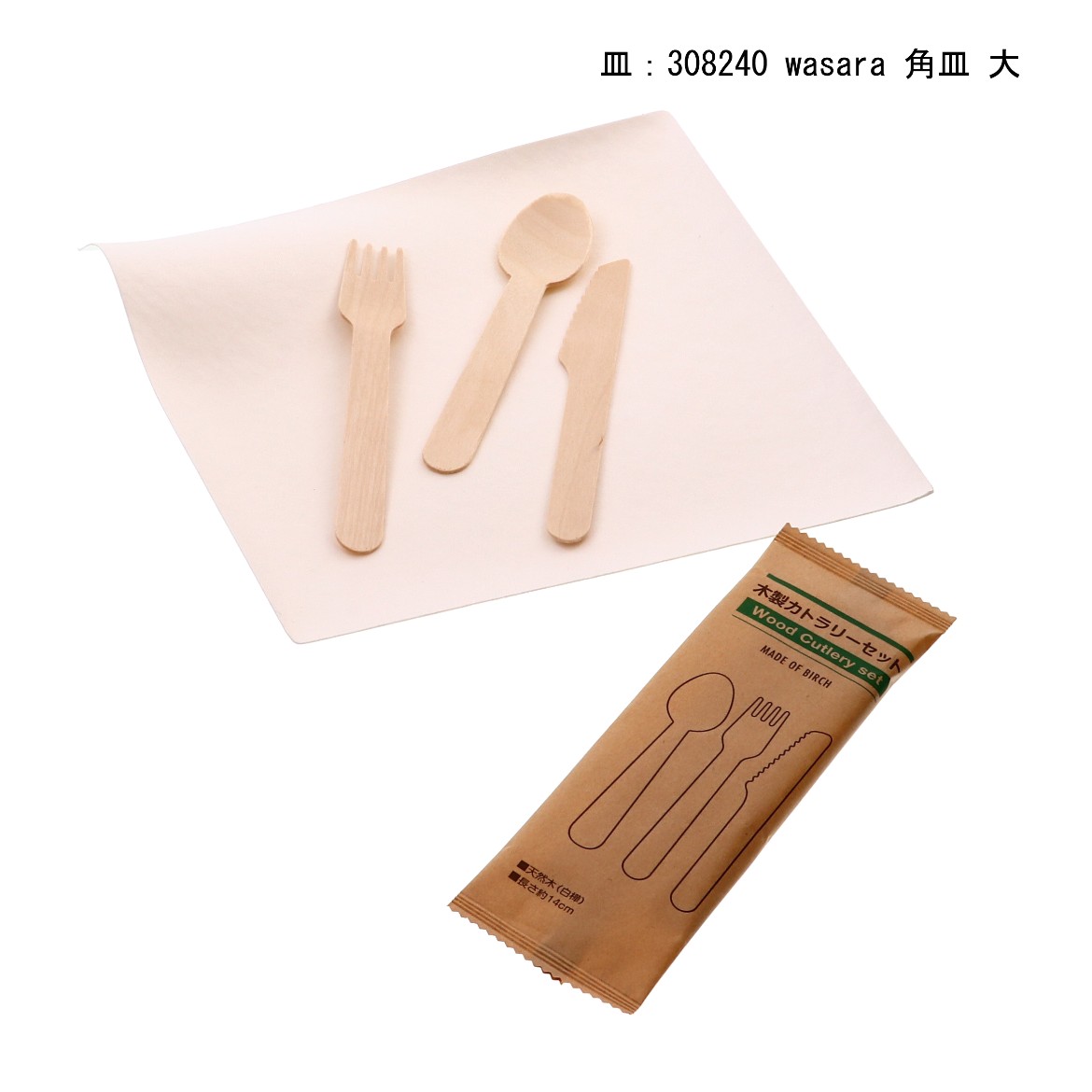 白樺の白く美しい木目は、木の温もりを感じさせ、お食事シーンを優しく彩ります。個包装になっているので衛生面も安心してご使用いただけます。こちらは、SDGsに基づいてメーカー様が「脱プラスチック」を目標に作られた製品です。