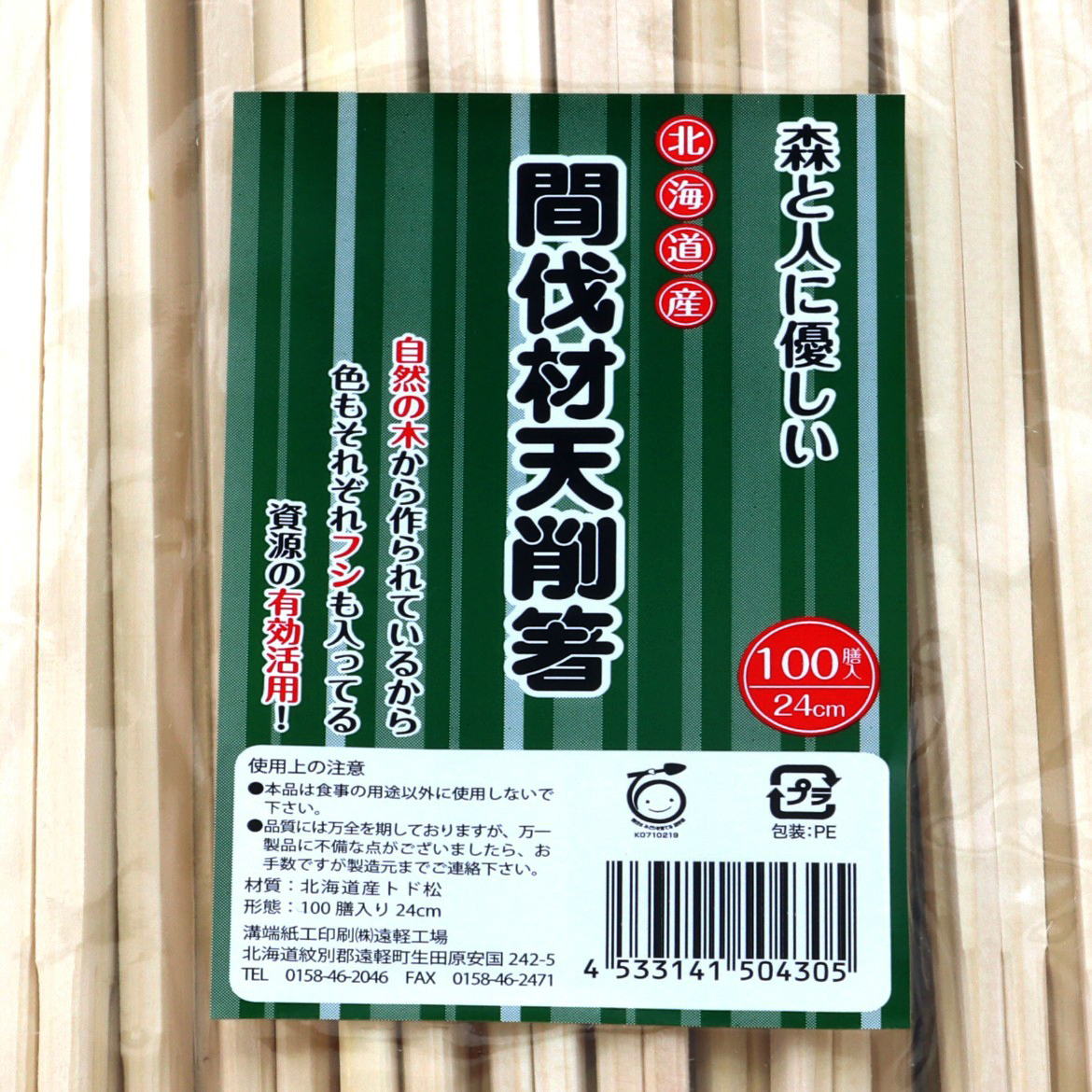 北海道産の松の間伐材を使用しています。薬品を使っていないため、安心安全です。