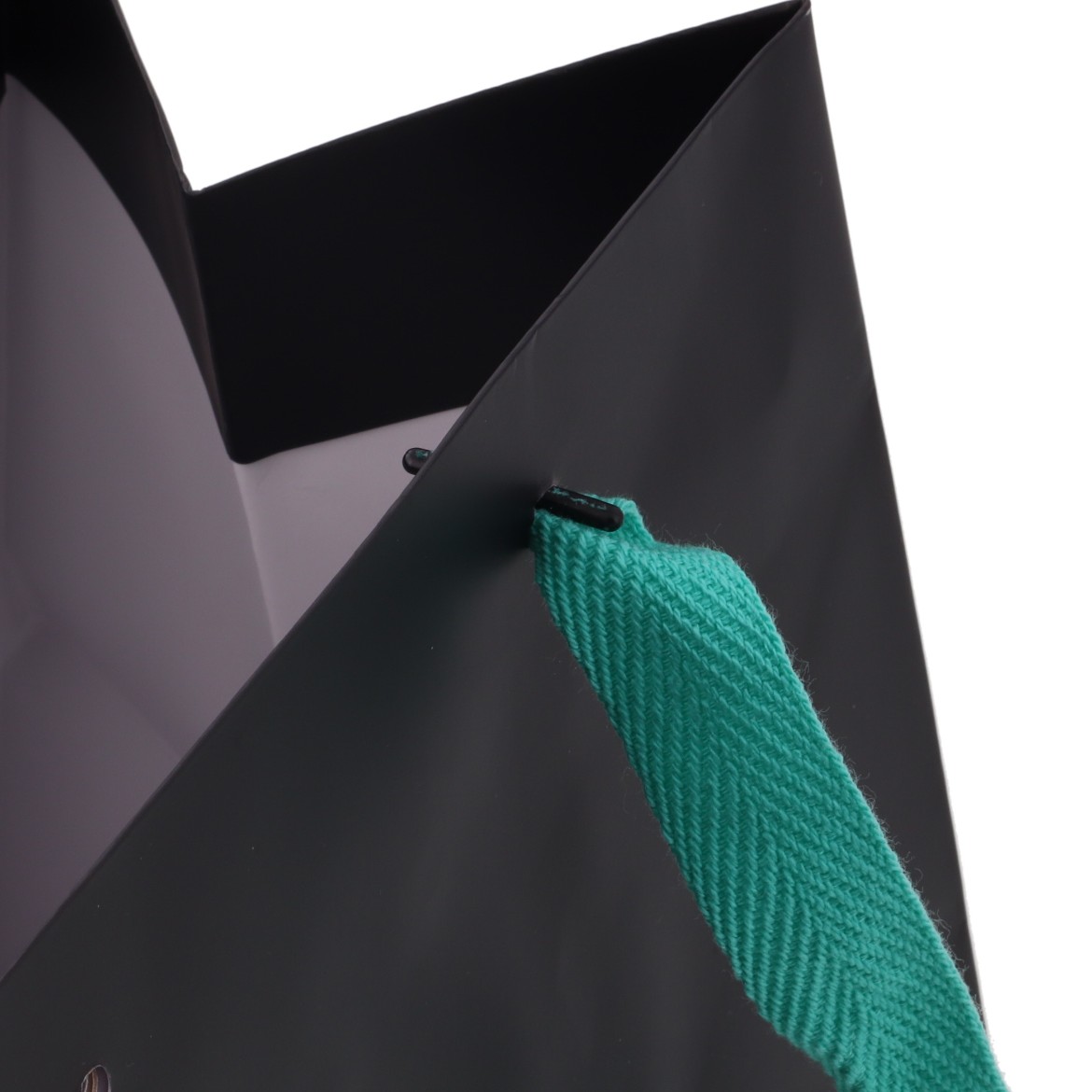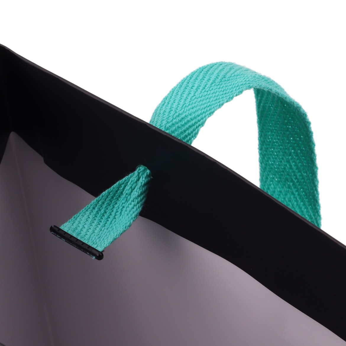 [ひも取付式]黒マット紙手提げ 紐:エメラルドグリーン