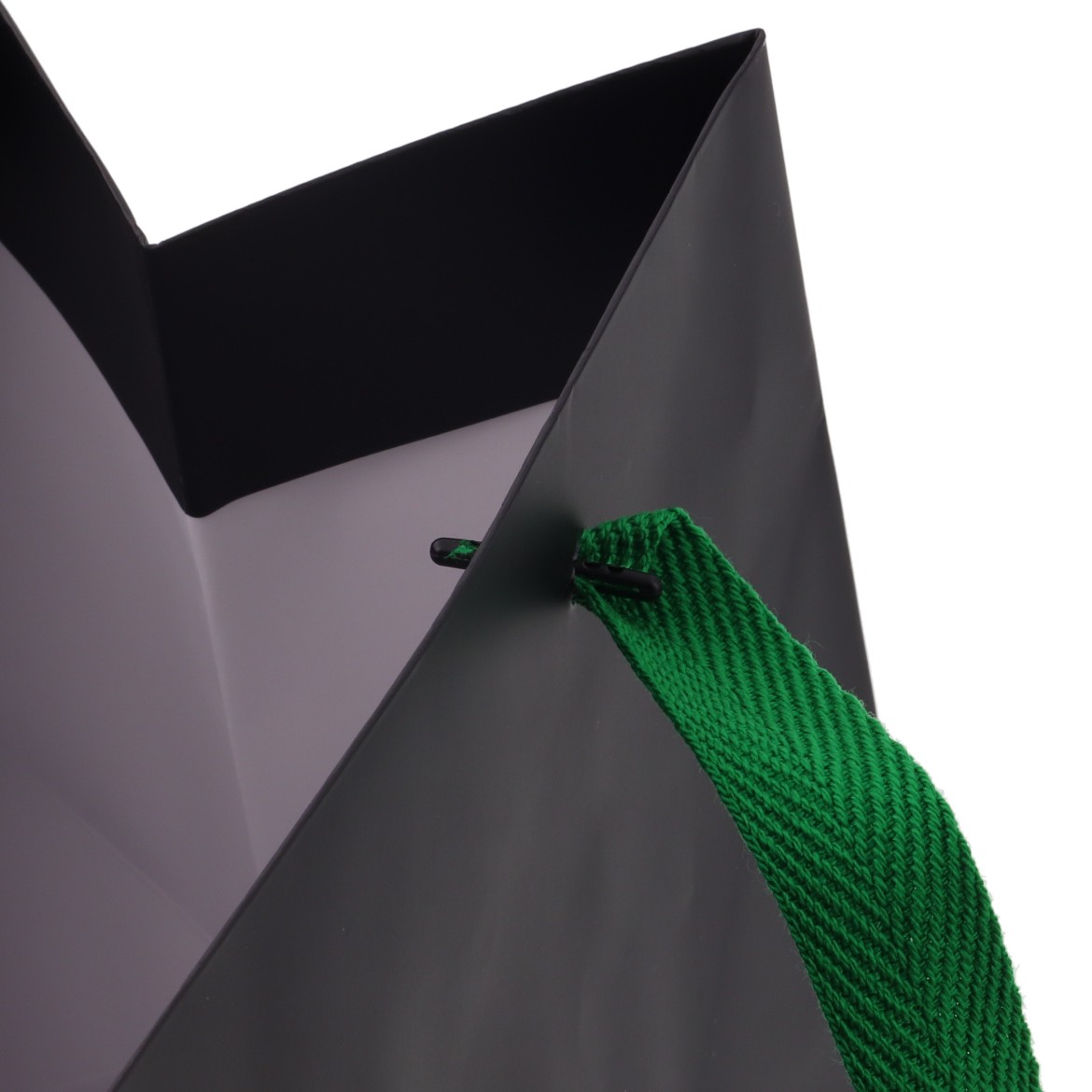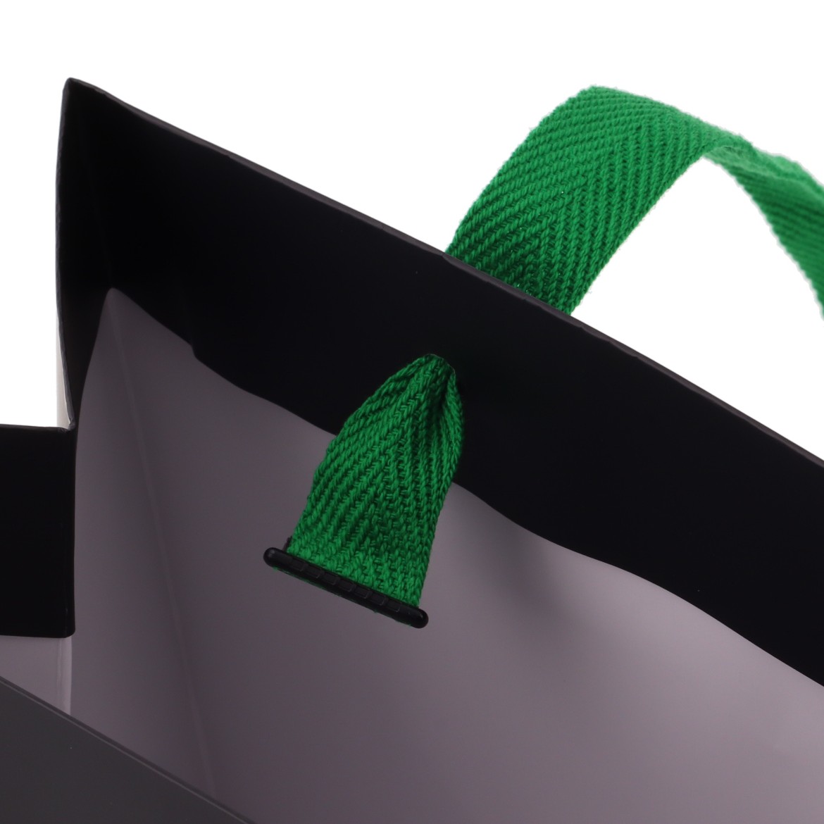 [ひも取付式]黒マット紙手提げ 紐:グリーン