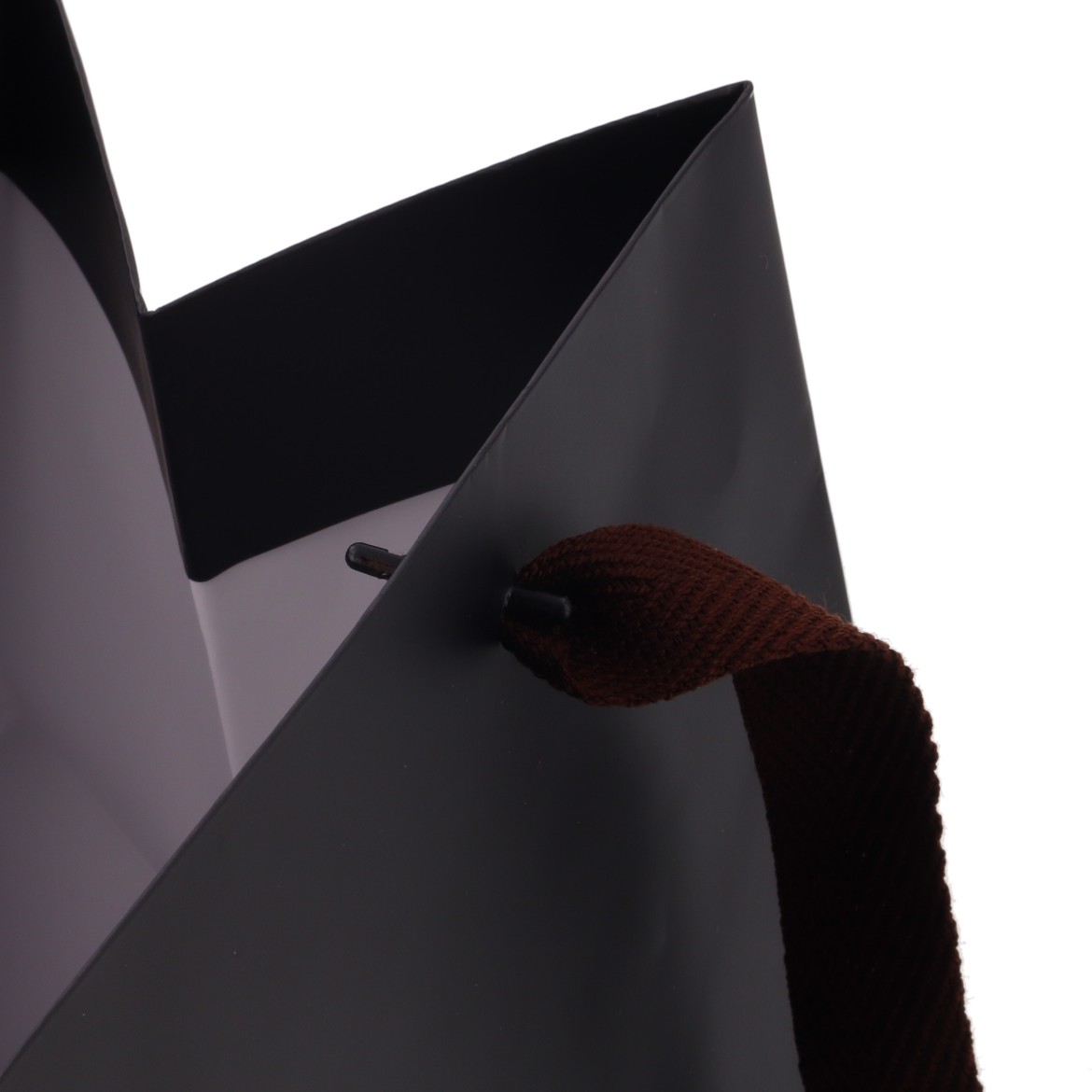 [ひも取付式]黒マット紙手提げ 紐:ディープブラウン