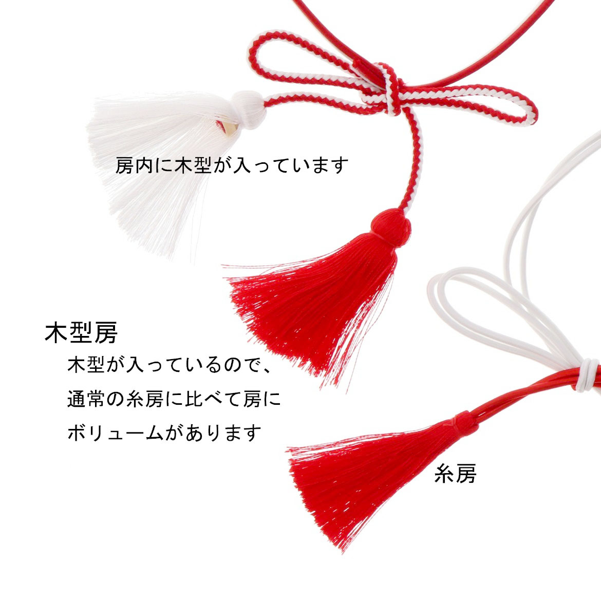 帯締 紅白 木型房ゴム 蝶結 250mm