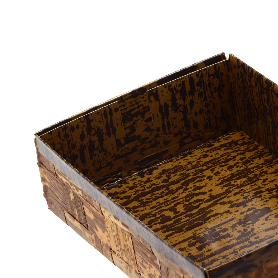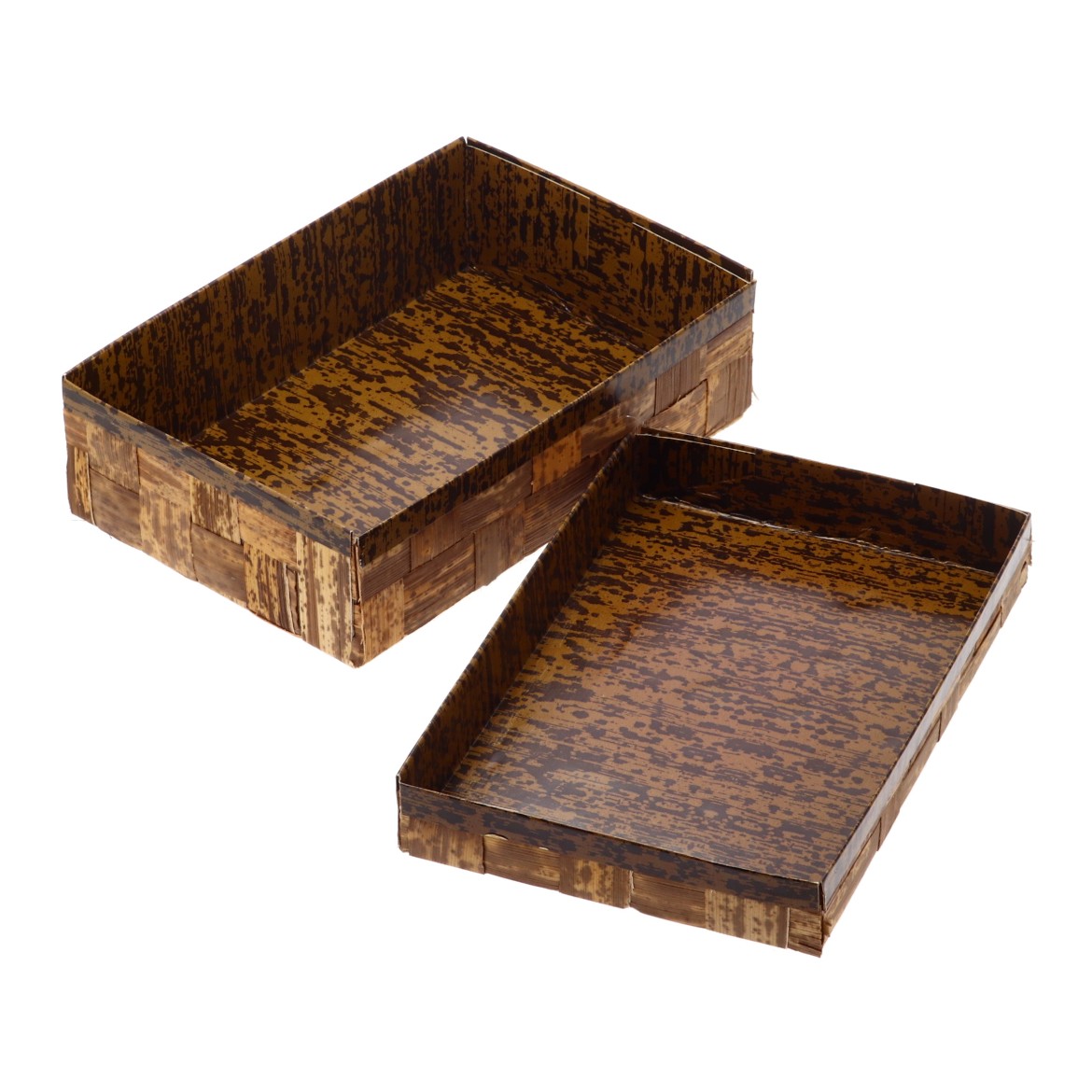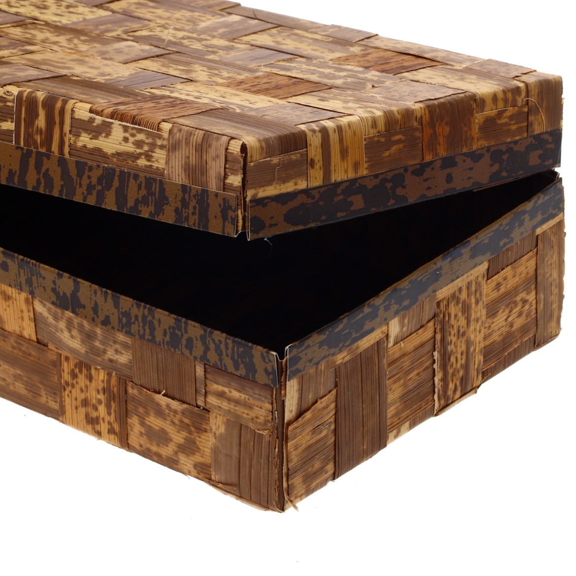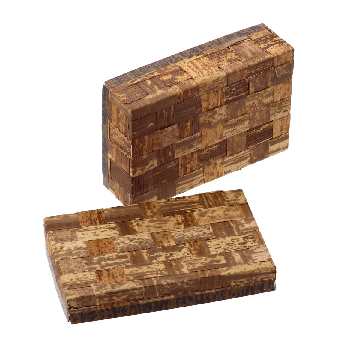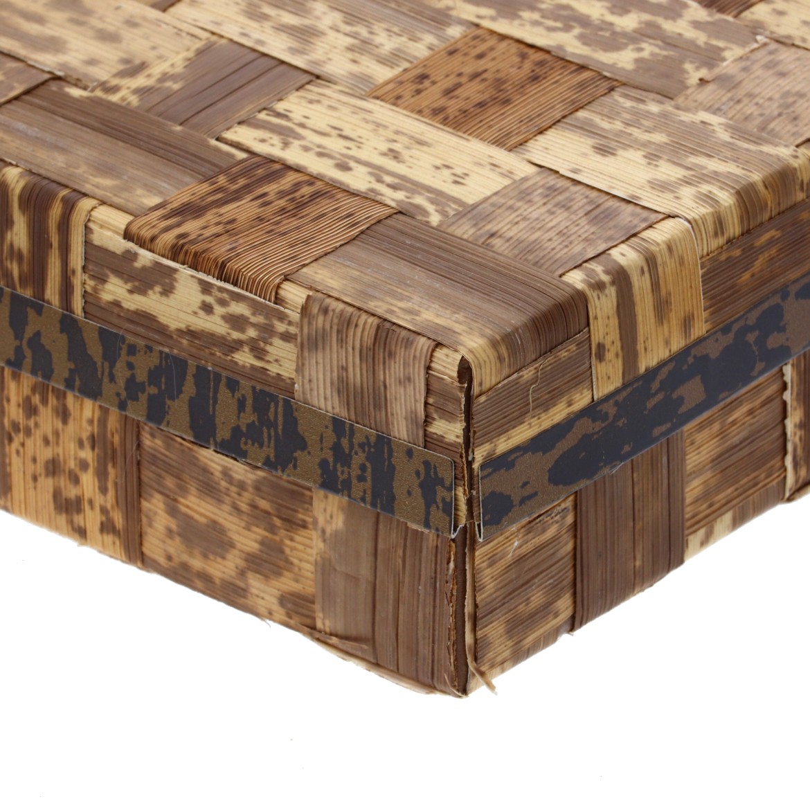 竹の折箱の内側に紙を貼り合わせてプレス加工しました。竹皮の柔らかさ、温かさは従来の竹皮製品と遜色ない商品に仕上がっています。耐水紙の専用中仕切りも別売りしておりますので、お弁当等に利用する際にご使用ください。