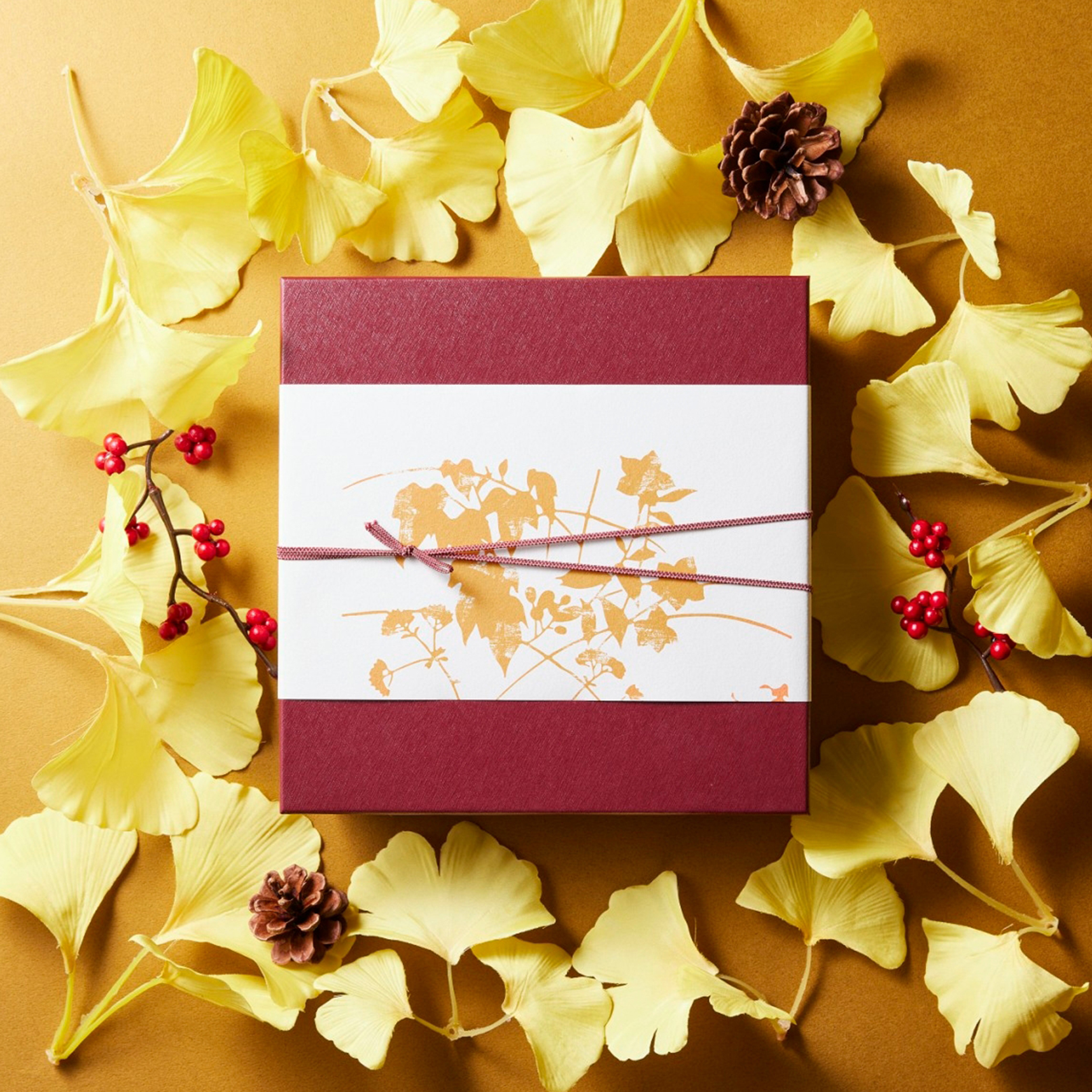 まるでイチョウ並木のような、一目で秋を感じられる掛け紙です。差し色に朱や締め色に茶の掛け紐をあしらっても素敵。