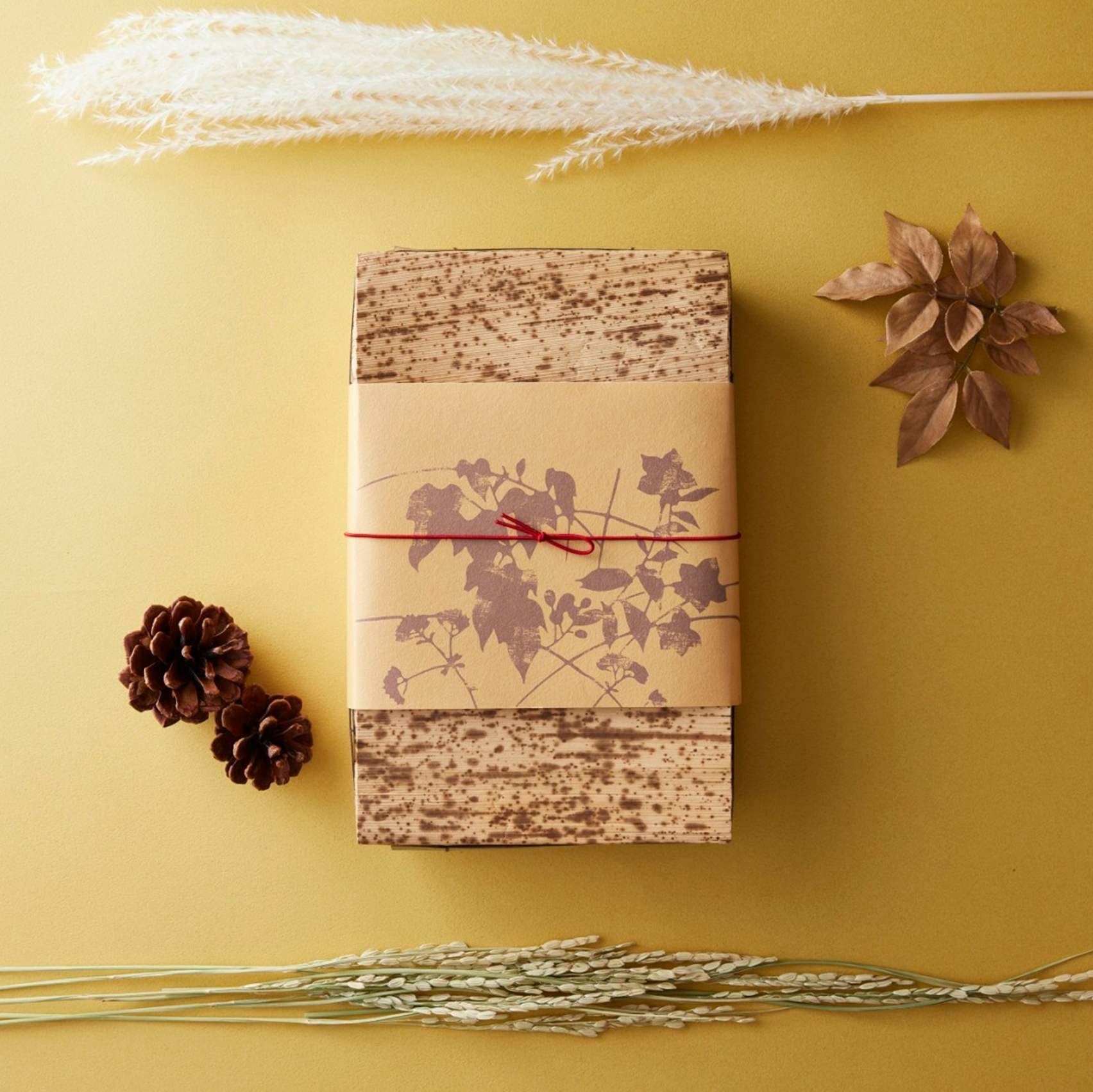 高級感のある渋い色味が秋らしい一枚。落着いた色味は黒や赤の折にも映えます。渋い色味なので明るめの紐が合います。