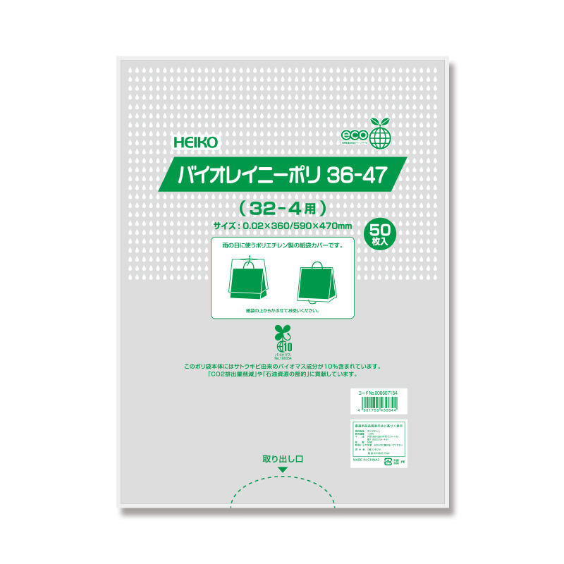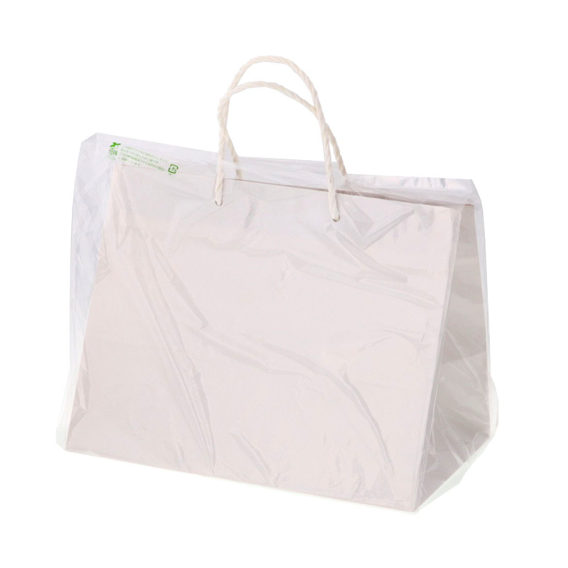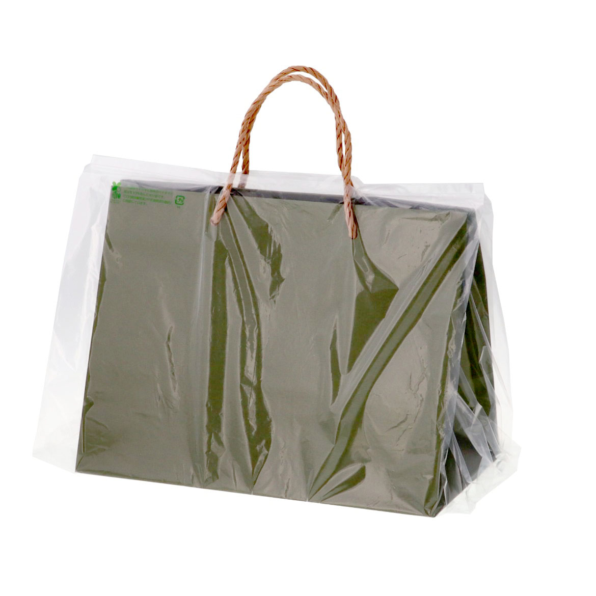 雨の日に紙袋が濡れないようにするためのカバーです。生物由来の有機資源を原料としたバイオマス成分を10%含んだポリ袋です。