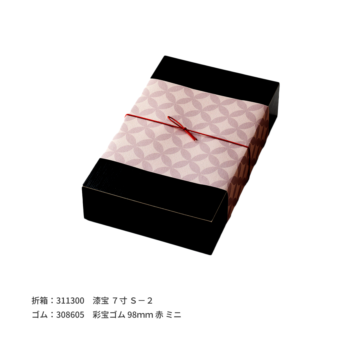 七宝(しっぽう)とは仏教の教典に出てくる七種の宝のことで、円形が永遠に連鎖し繋がるこの柄に、円満、調和、ご縁などの願いが込められた縁起の良い柄です。