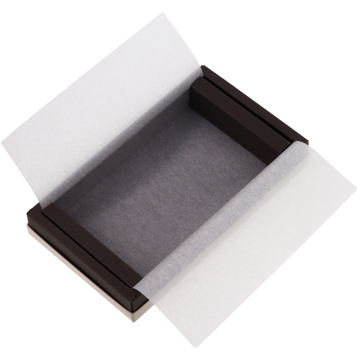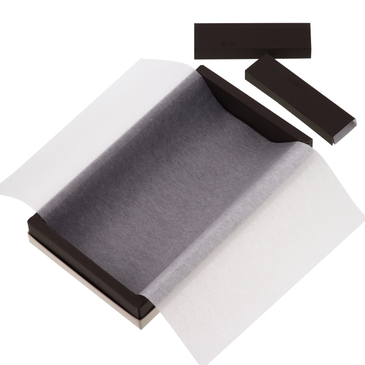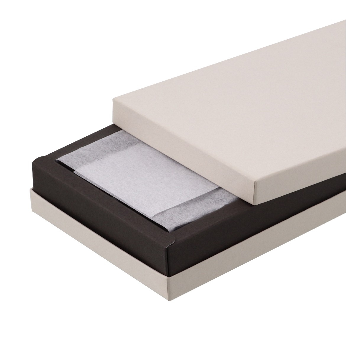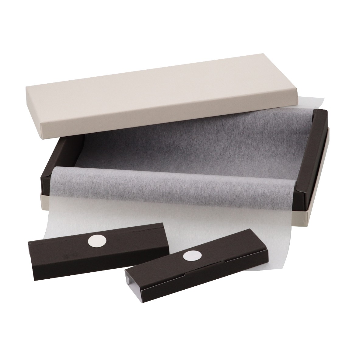 からすみの厚さに合わせて作られた箱なので、深さが無く沈み込むことがありません。また、付属のレーヨン紙に包めば上品な見た目にも仕上がります。