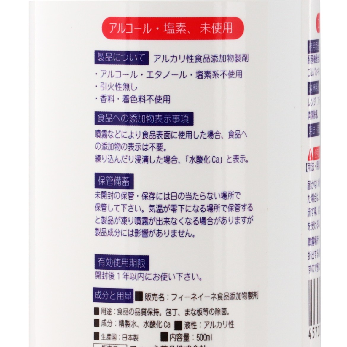 アルコールフリー、塩素フリーのアルカリ性食品添加物製剤。