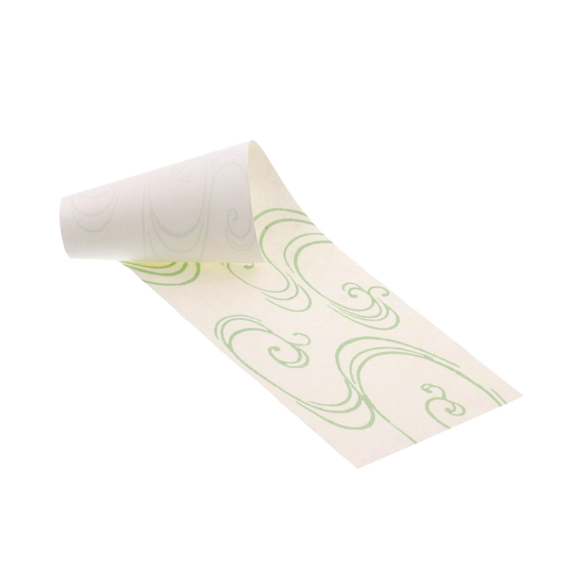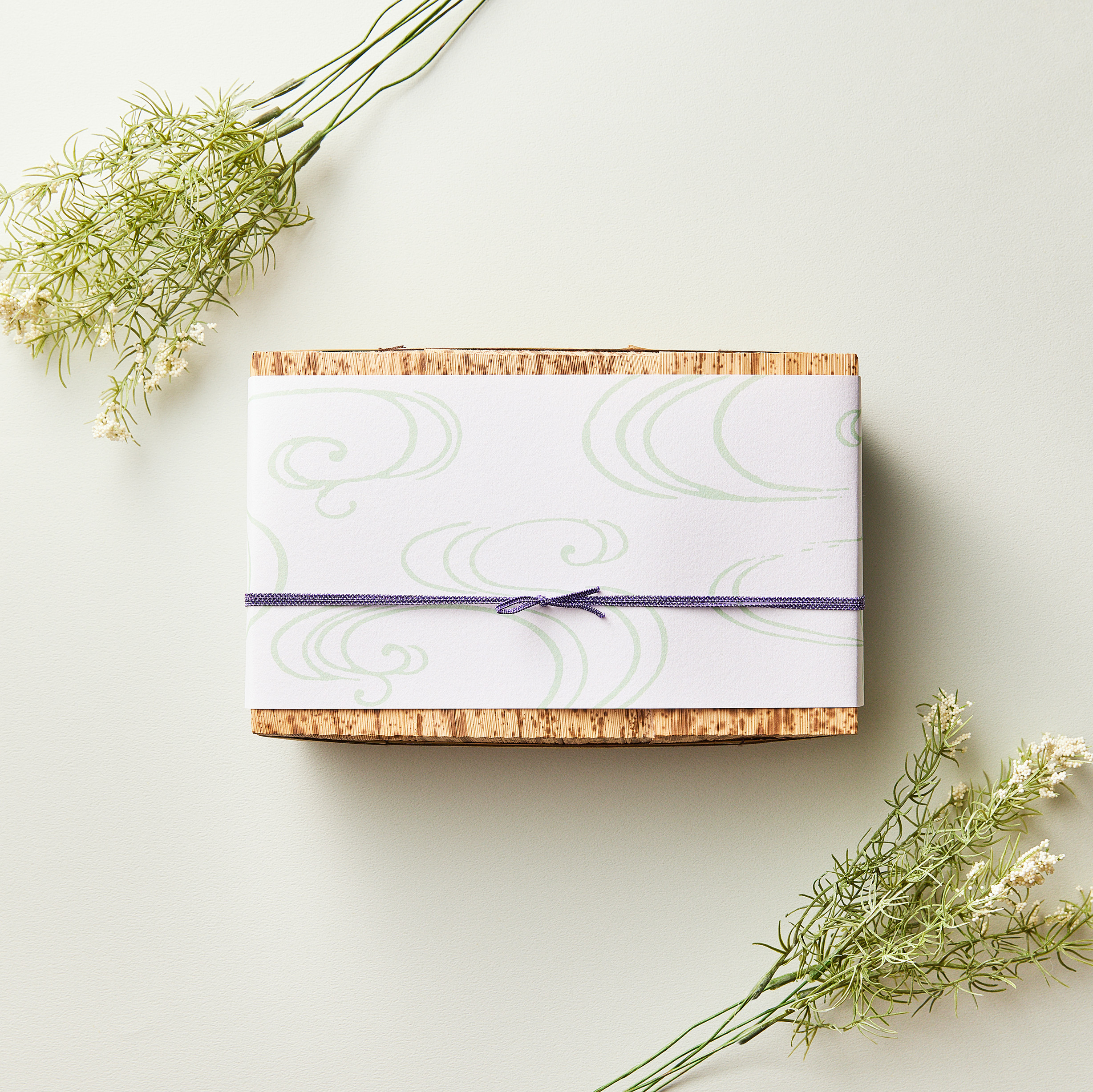 柳の葉のような、柔らかい白みを含んだ鮮やかな緑色が、涼しげに折に合う一枚。繊細な雲模様が、品のある雰囲気を出してくれます。