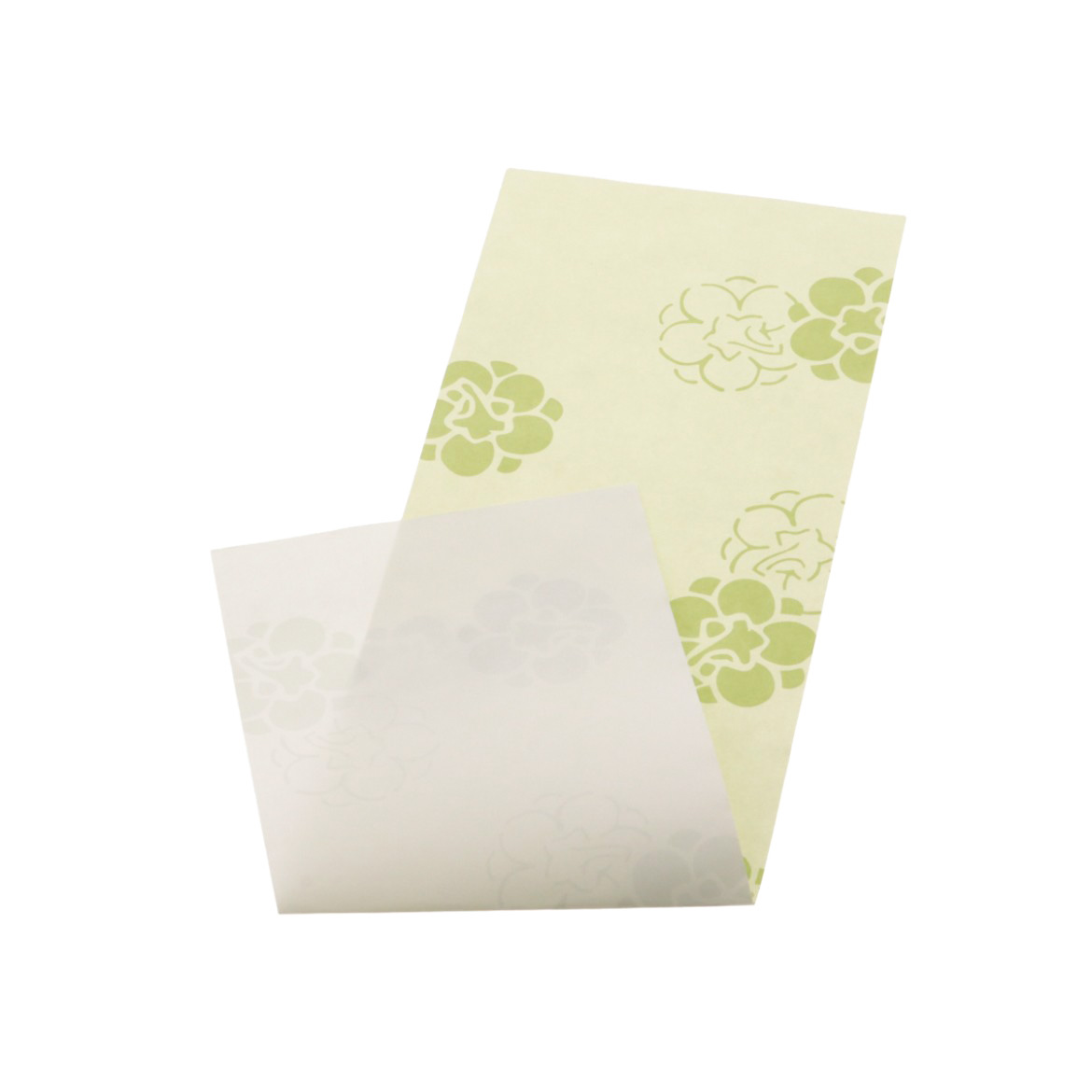 淡い緑から感じられる、若々しくエネルギッシュな色味は、春に芽吹く若葉のような力強さを感じさせます。春らしい色味から落ち着いた色味まで、合わせやすい掛紙です。