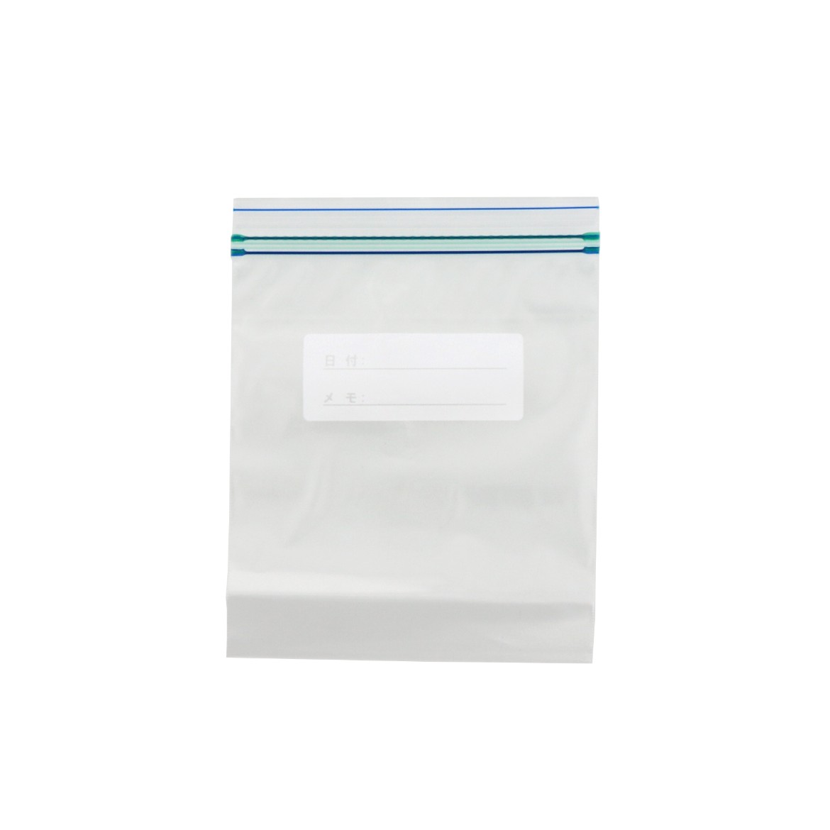 日付とメモが記入することができるタイプのダブルジッパー式の透明フリーザーバッグです。