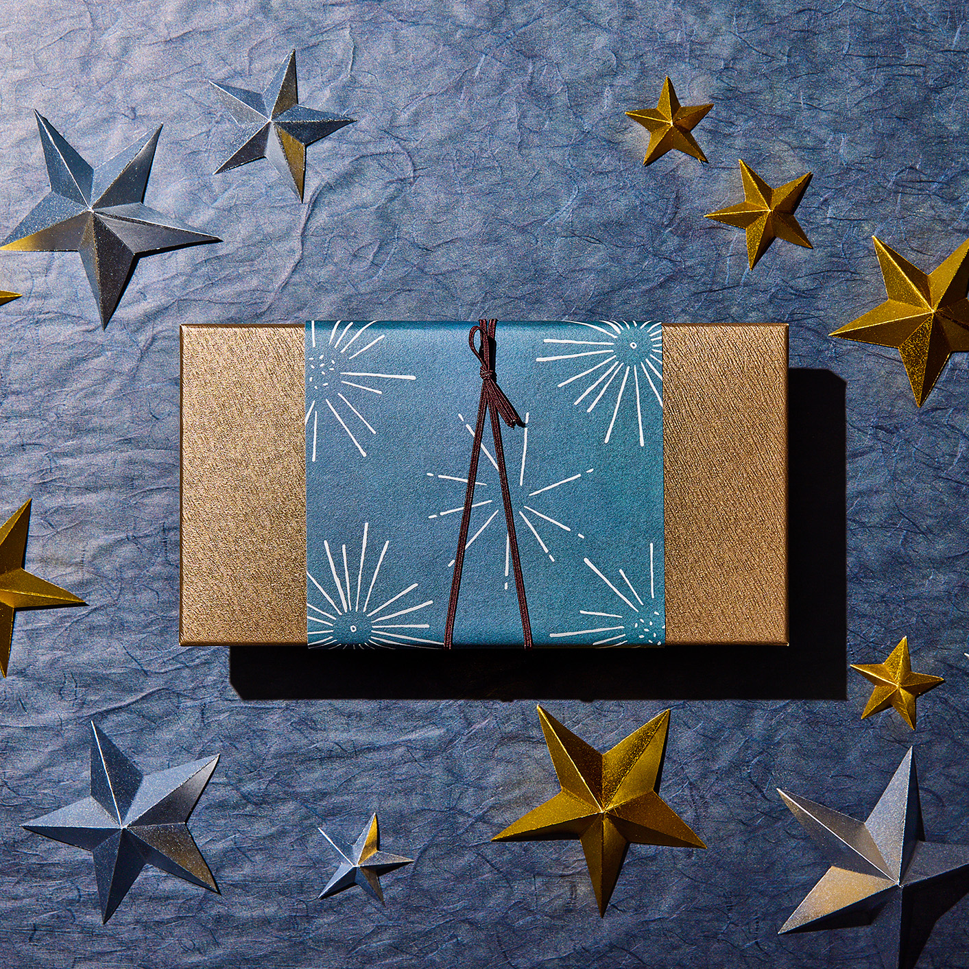 濃紺の夜空に写る、散らばった白い光線が切なく美しい大人なデザインの掛紙です。